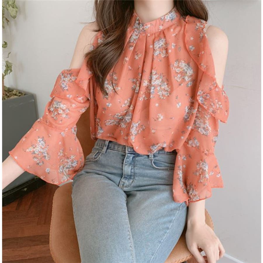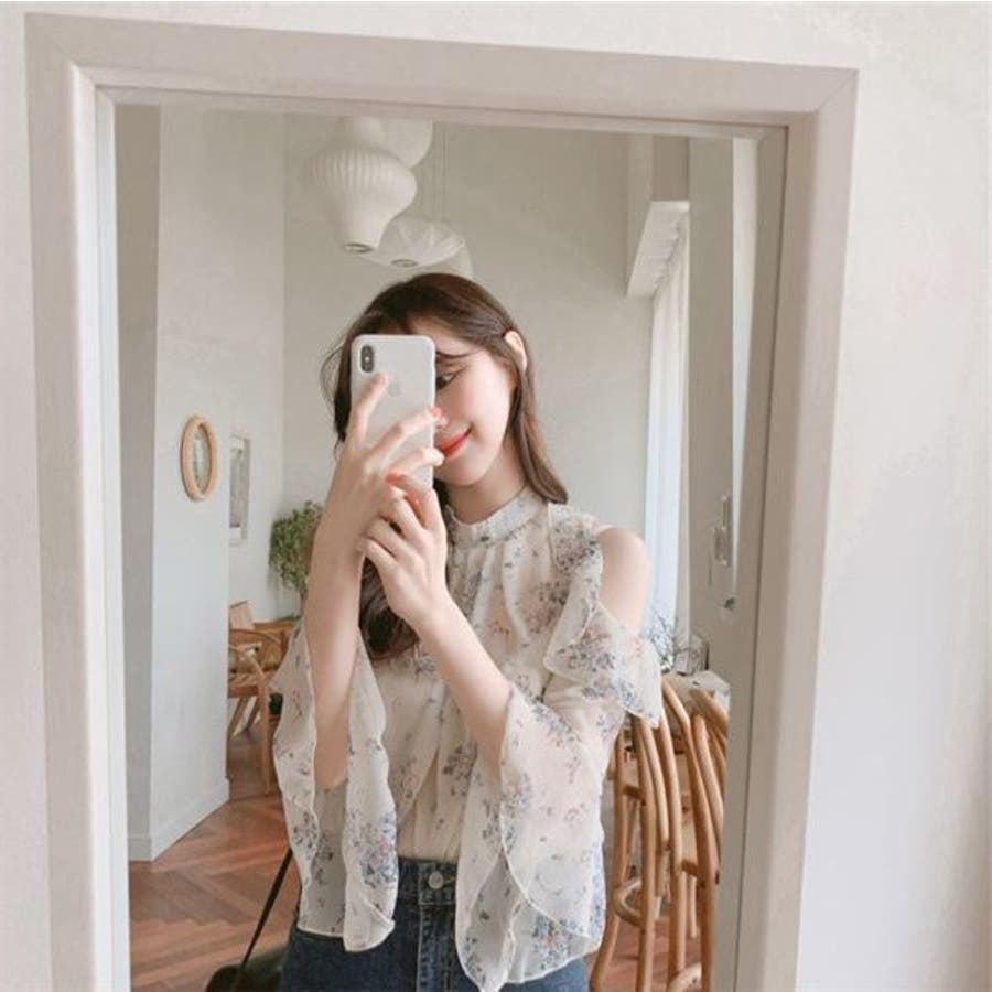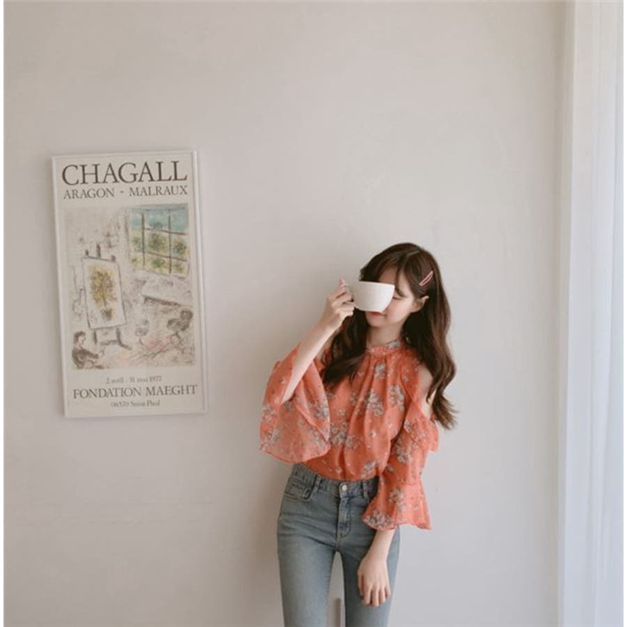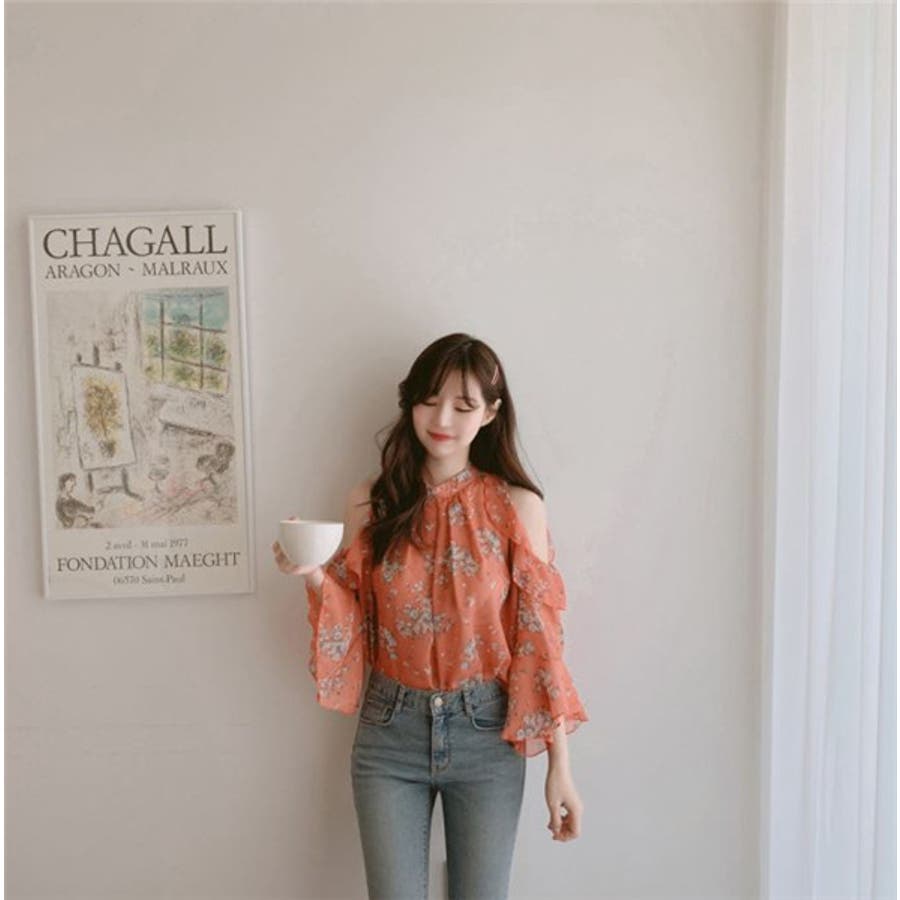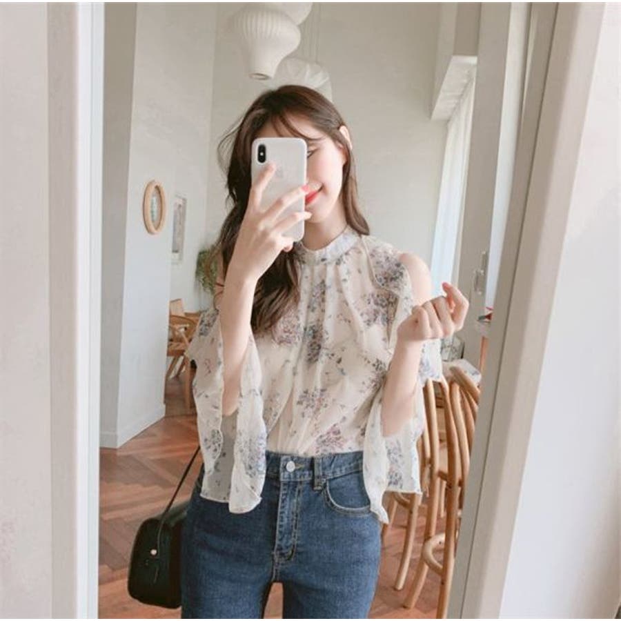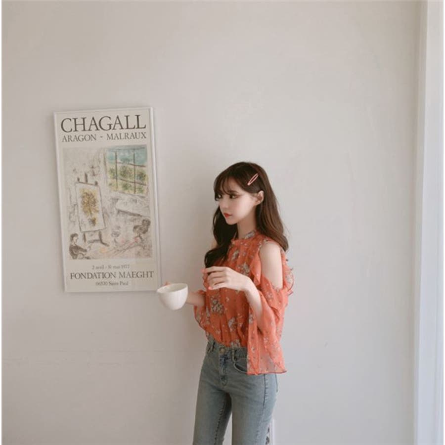 ふんわりフレアスリーブに、肩開きのおしゃれなデザインです♪