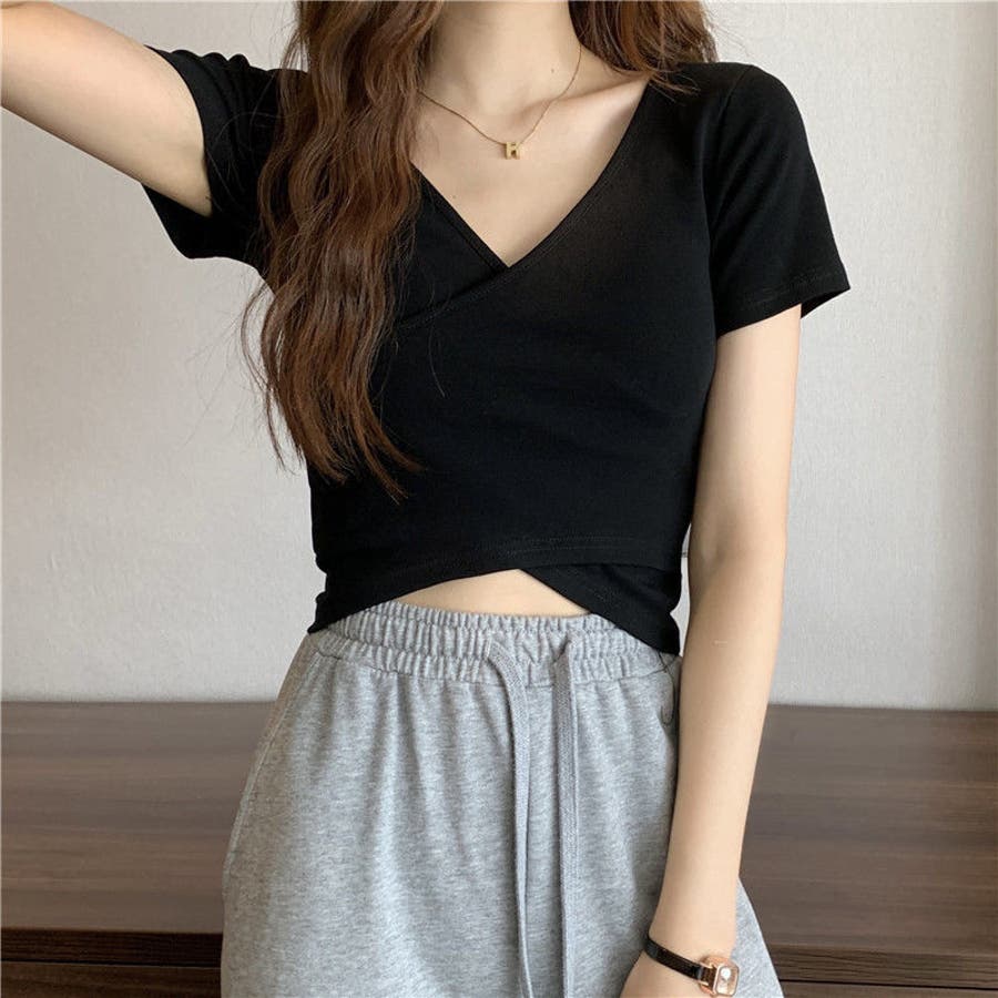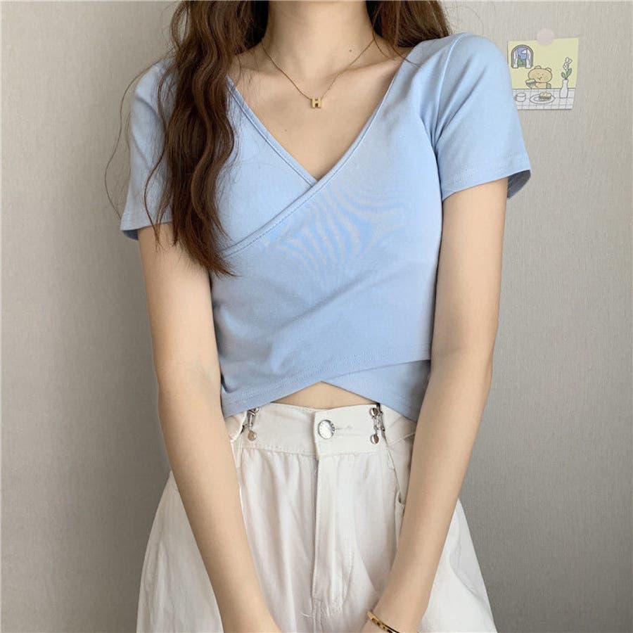 無地でシンプルですが、カシュクールデザインでかわいいです。