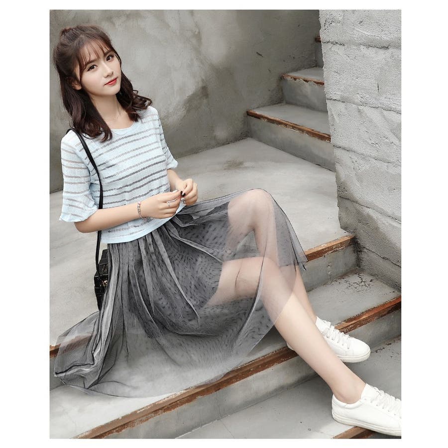 シースルースカートが涼しげで春夏のお出かけにぴったり。