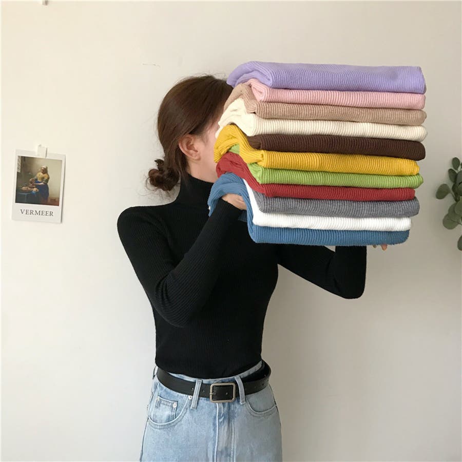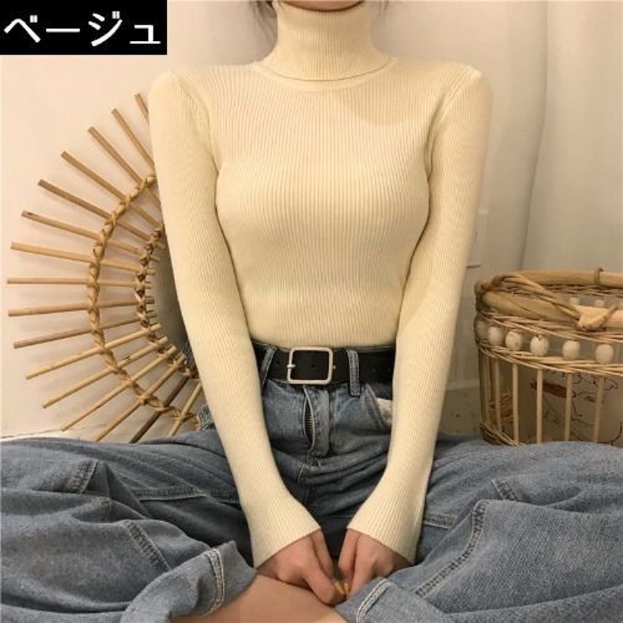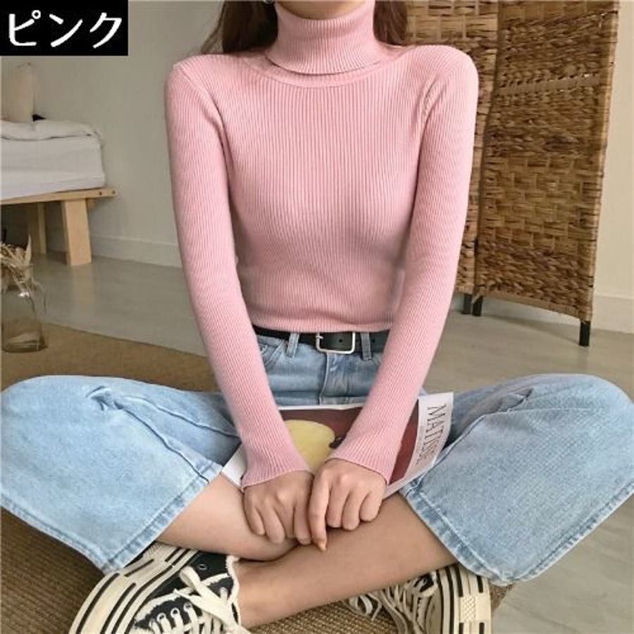 タートルネックの長袖セーターです。