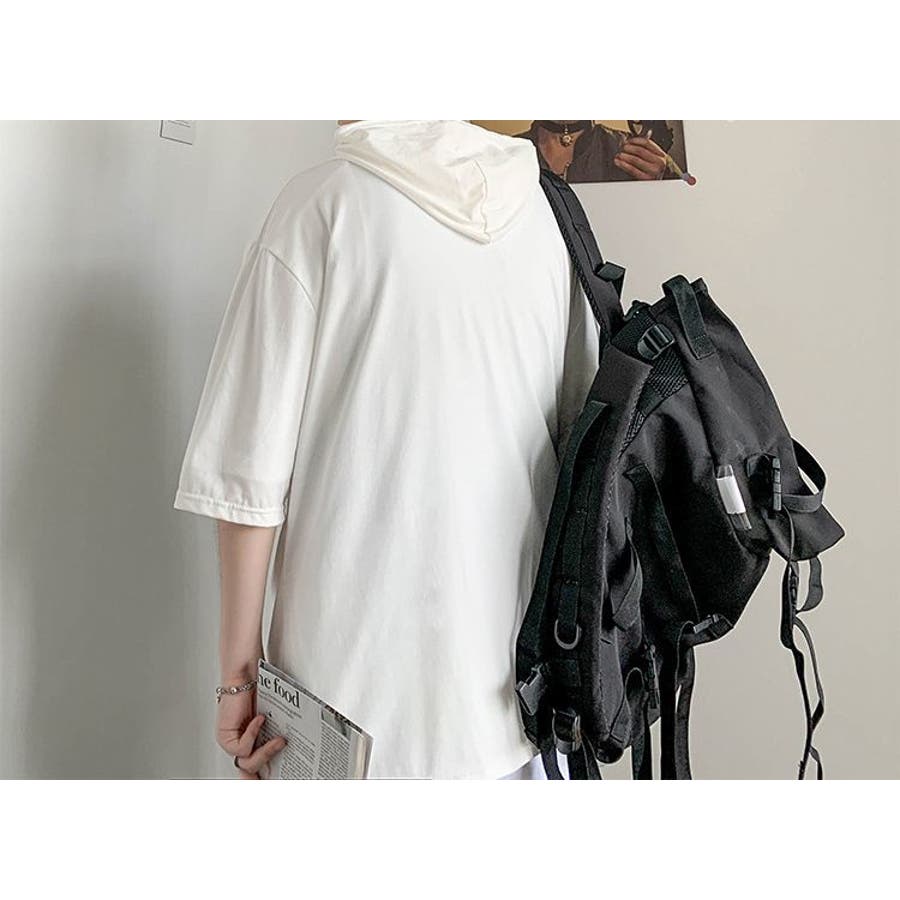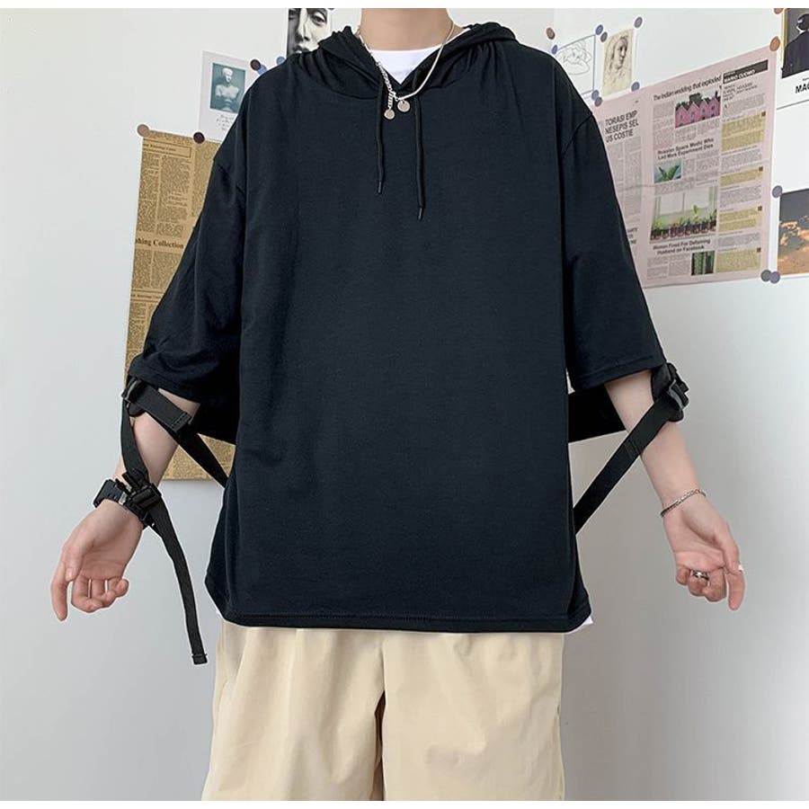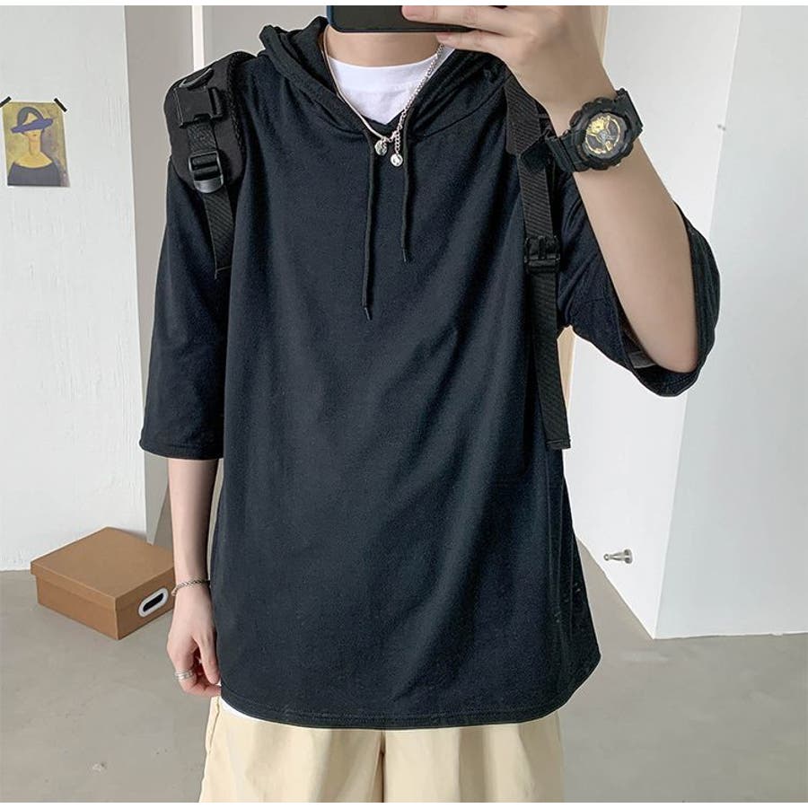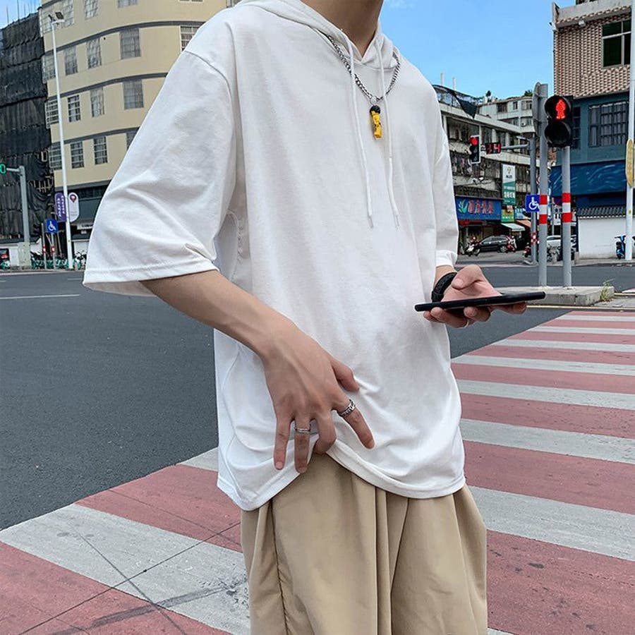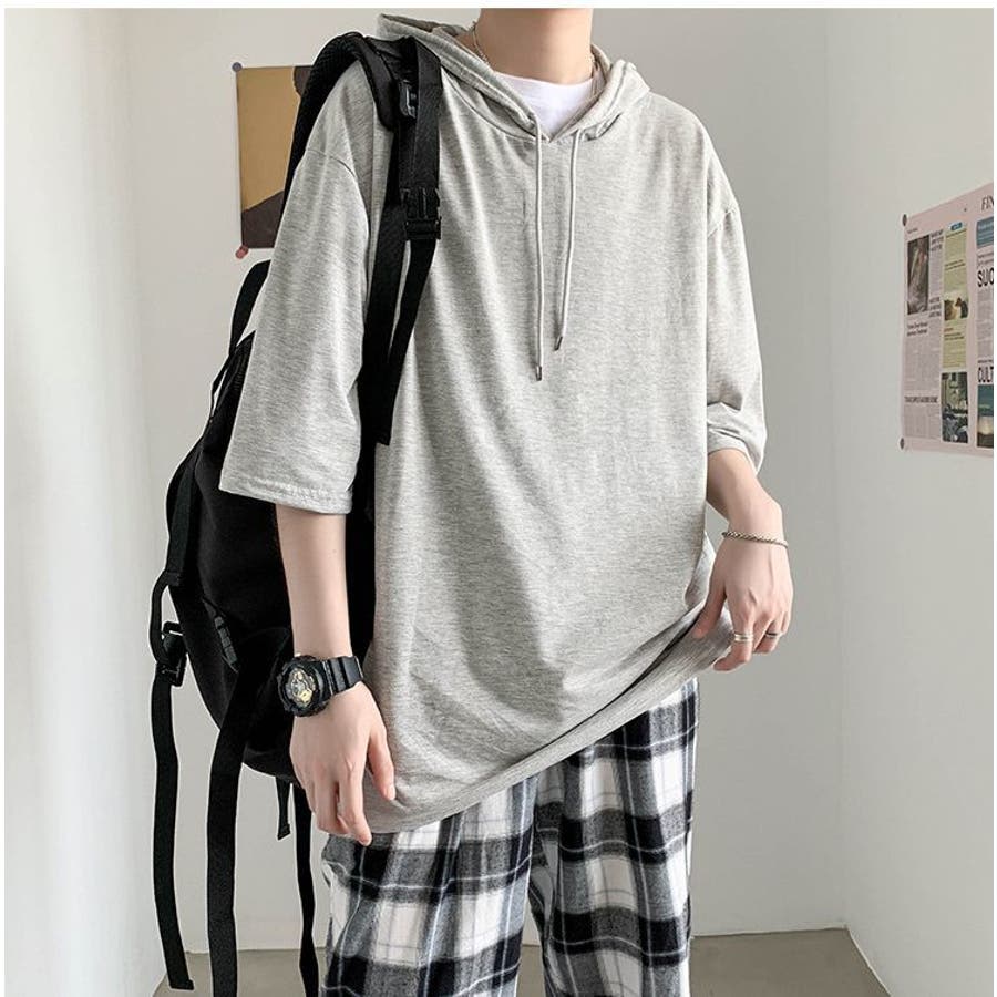 ゆったりとした5分袖でラフな着こなしを楽しめるメンズ用パーカーです。