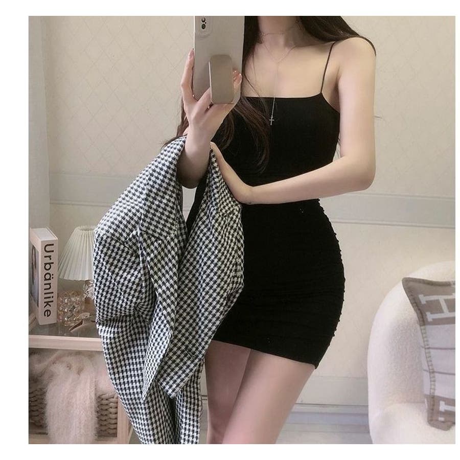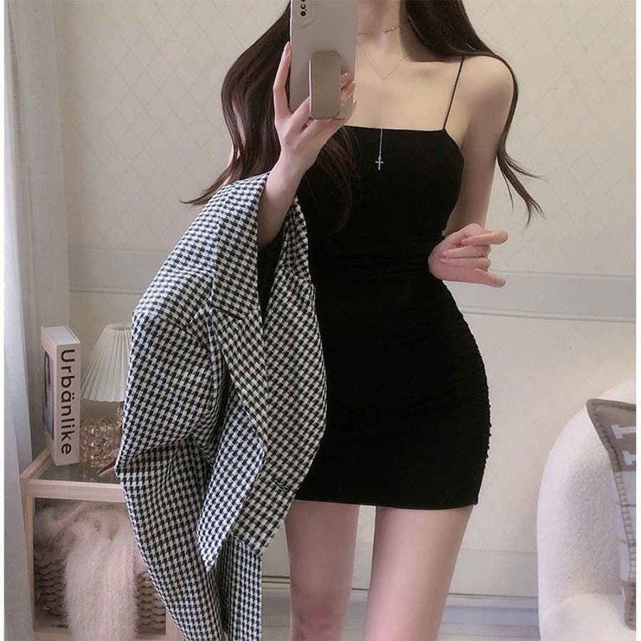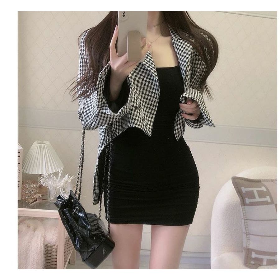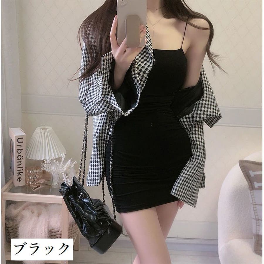 ミニ丈にタイトなシルエットが女性らしいラインを引き立ててくれます♪