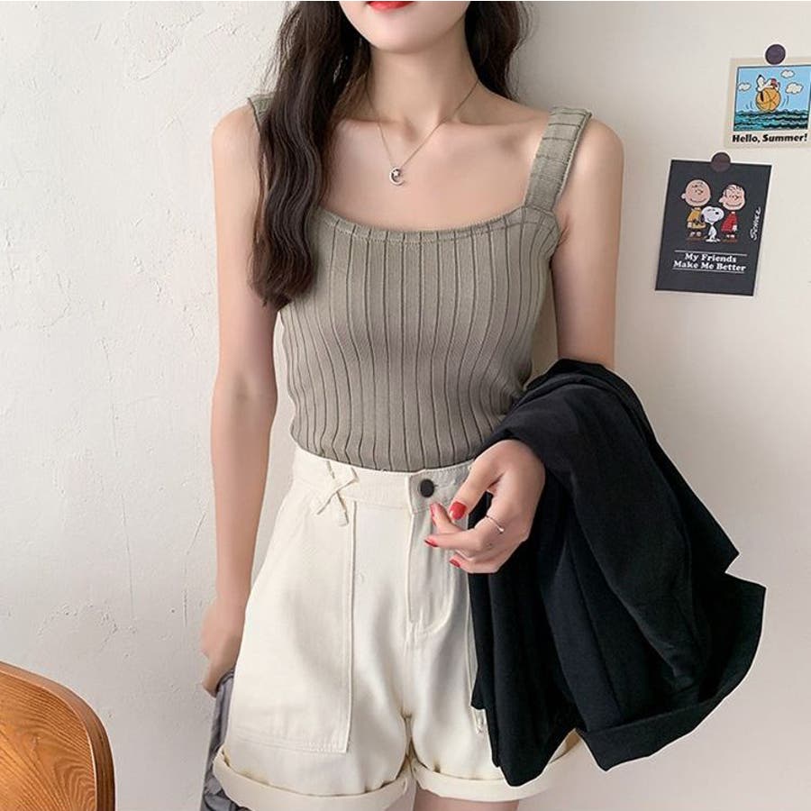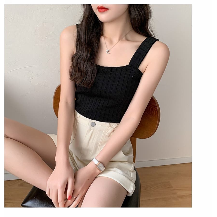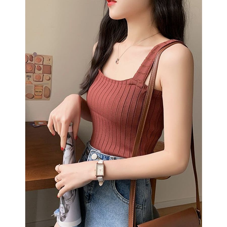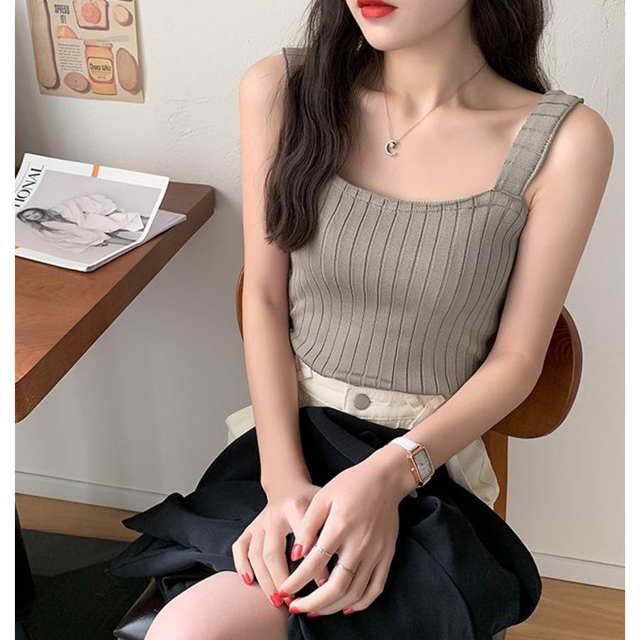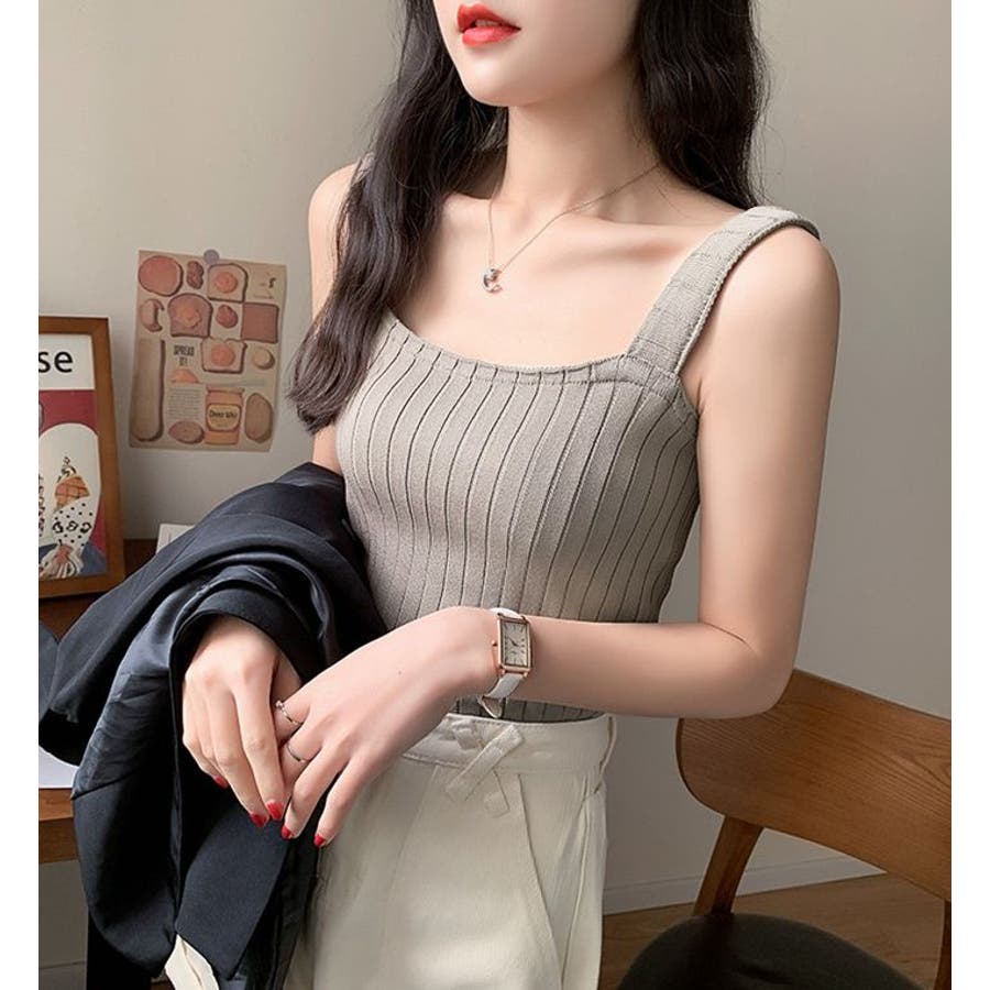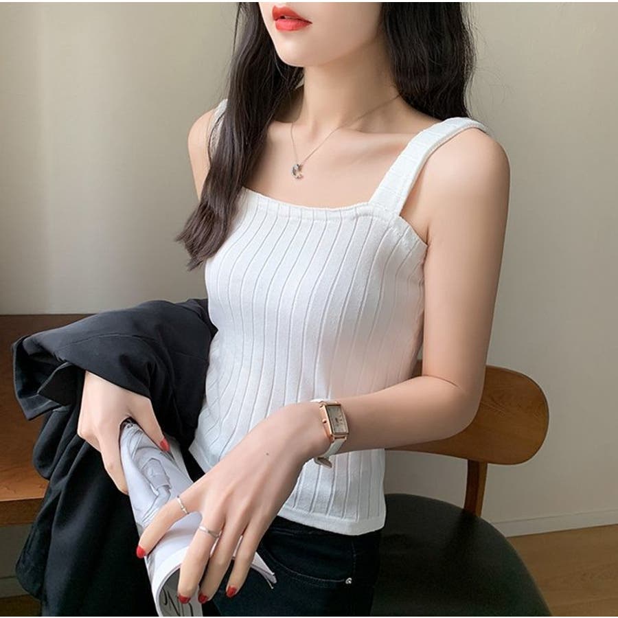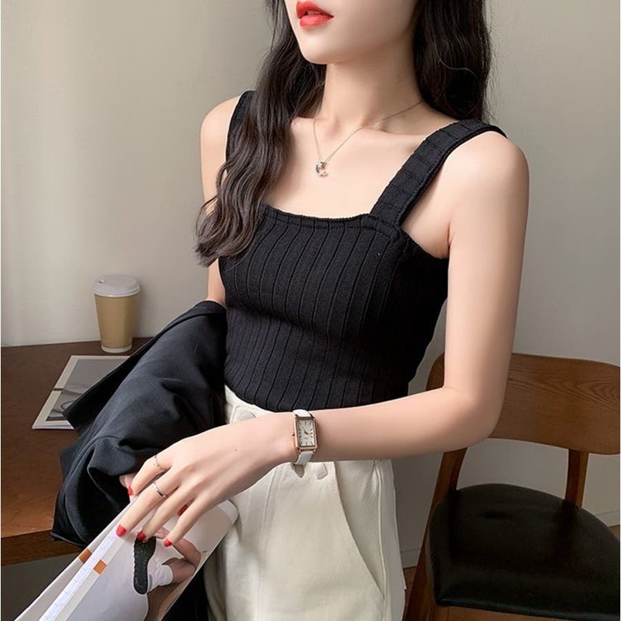 スクエアネックでデコルテもきれいに見えるシンプルなタンクトップです。