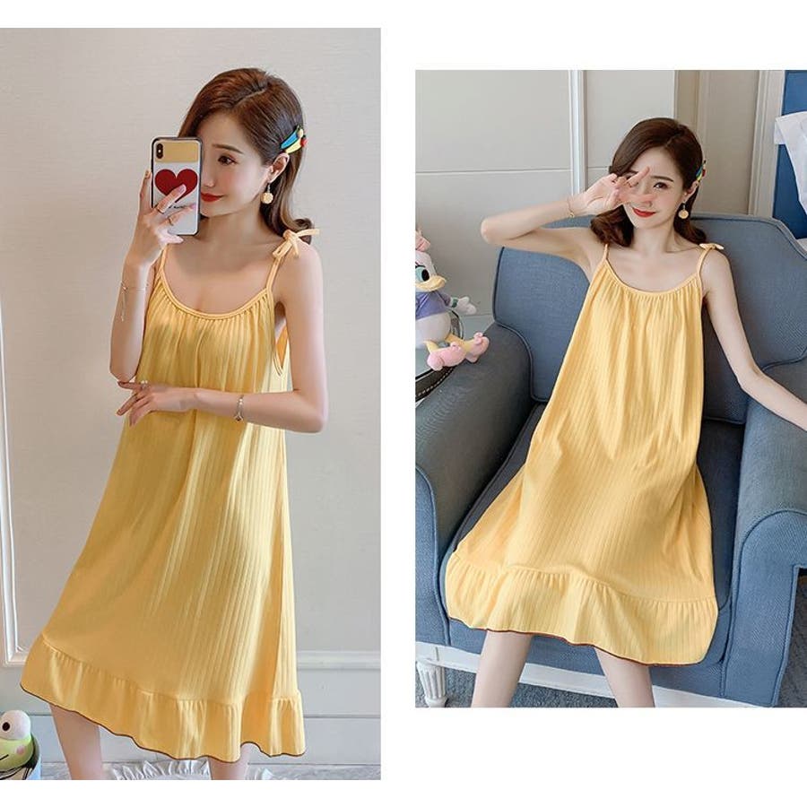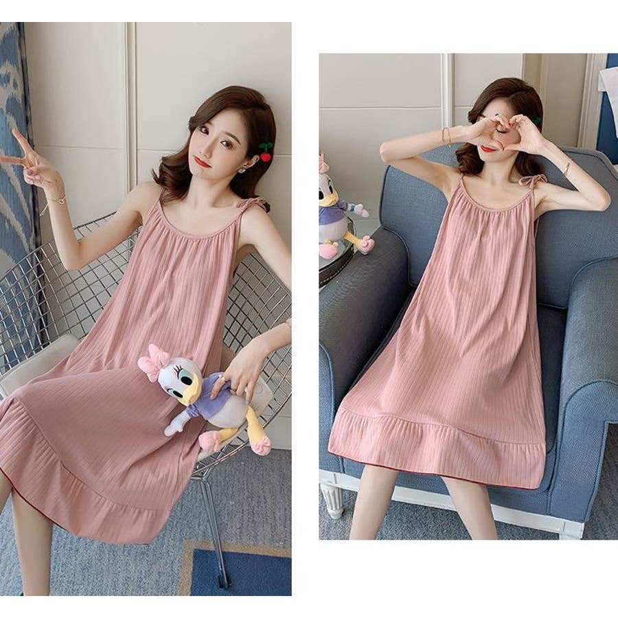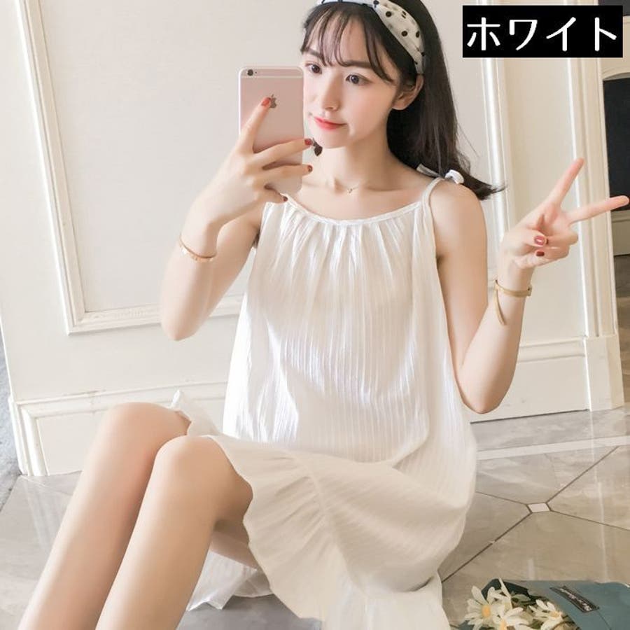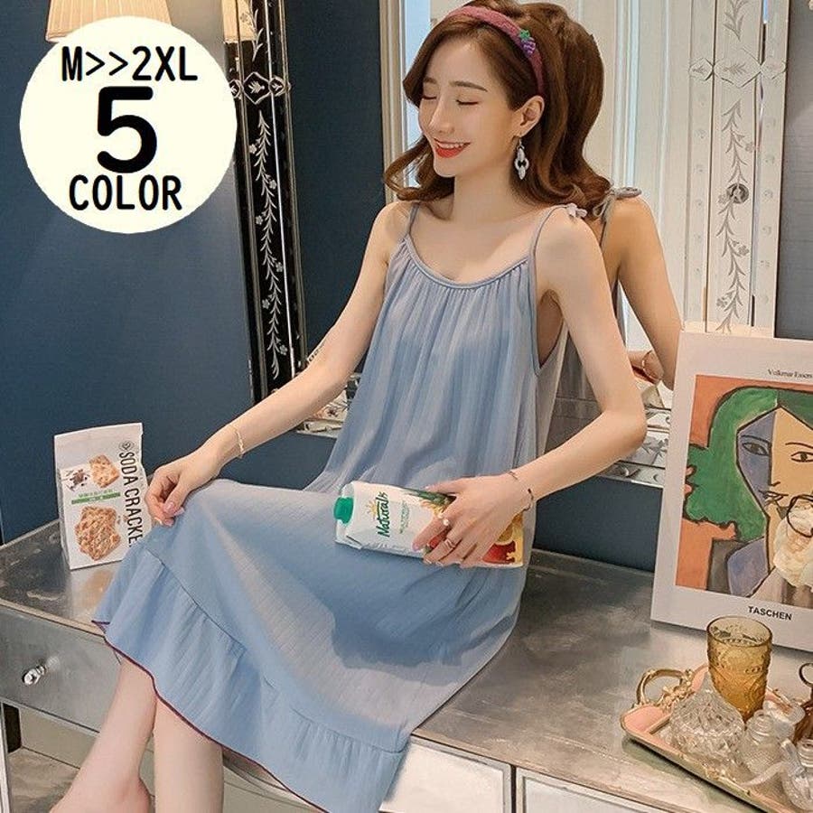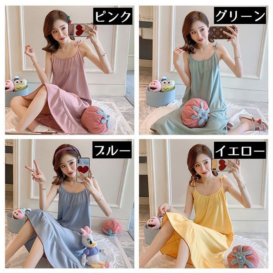 Aライン&フレアシルエットの膝丈キャミワンピ型ルームウェアです。