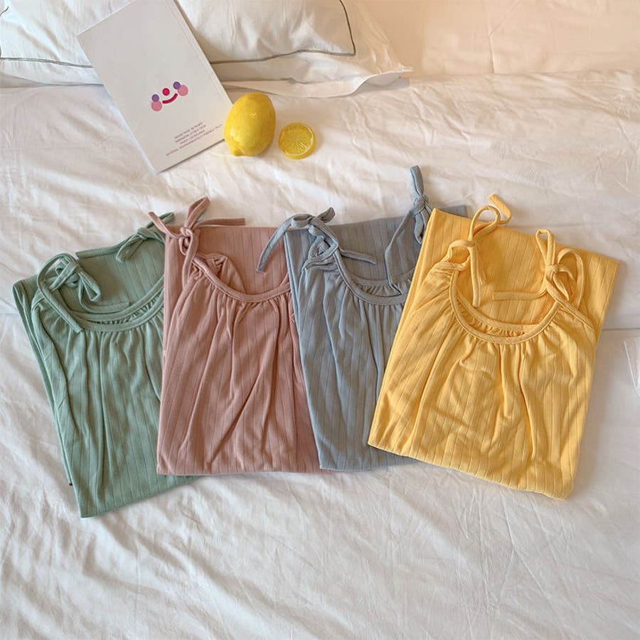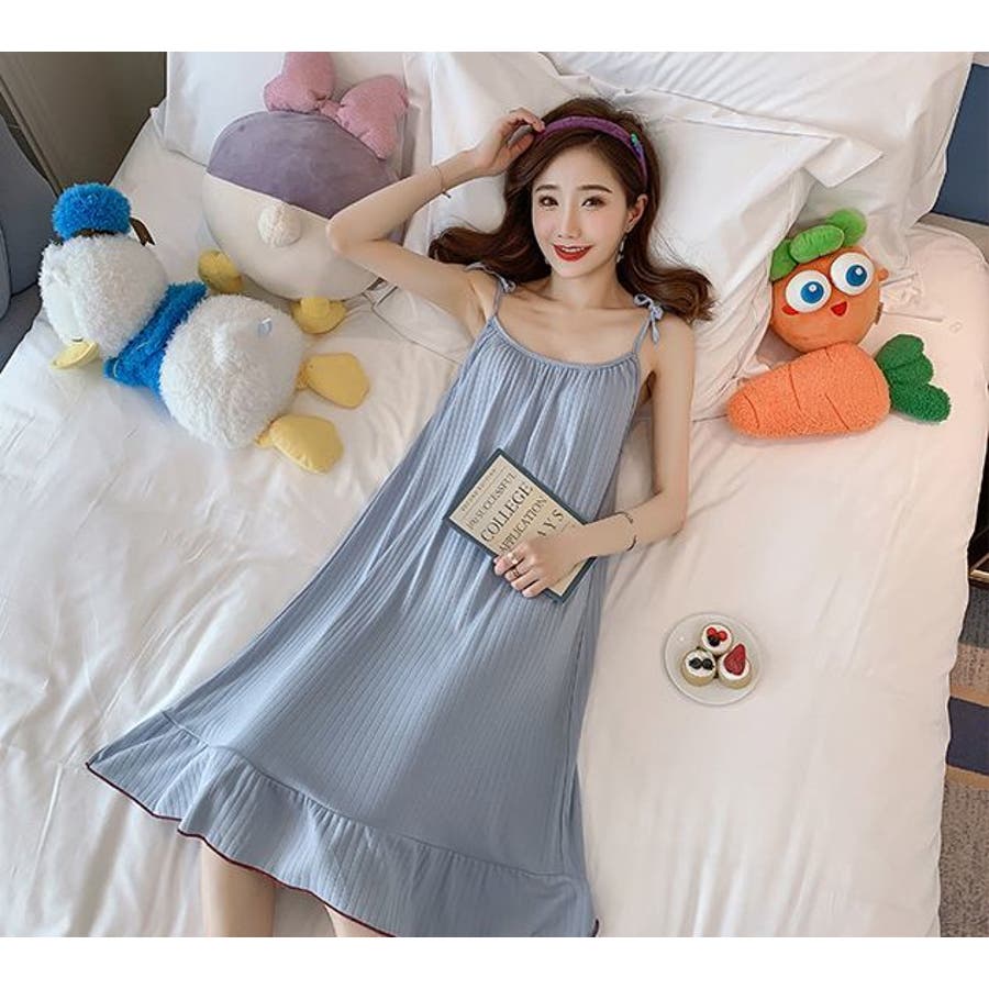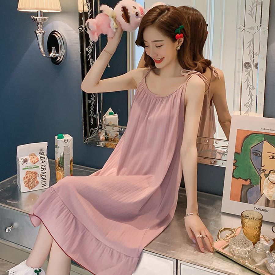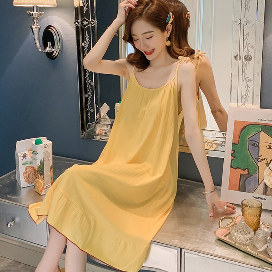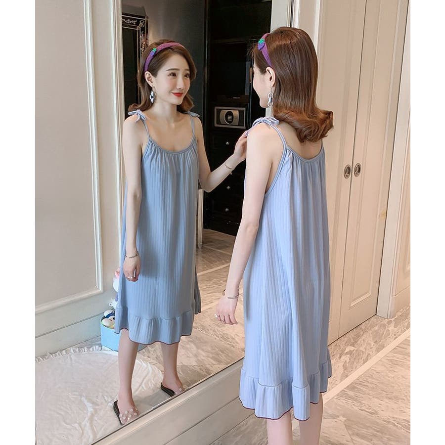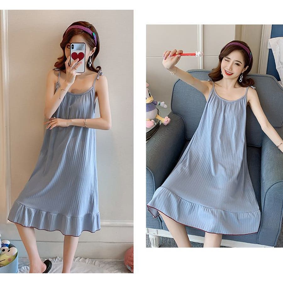 Aライン&フレアシルエットの膝丈キャミワンピ型ルームウェアです。