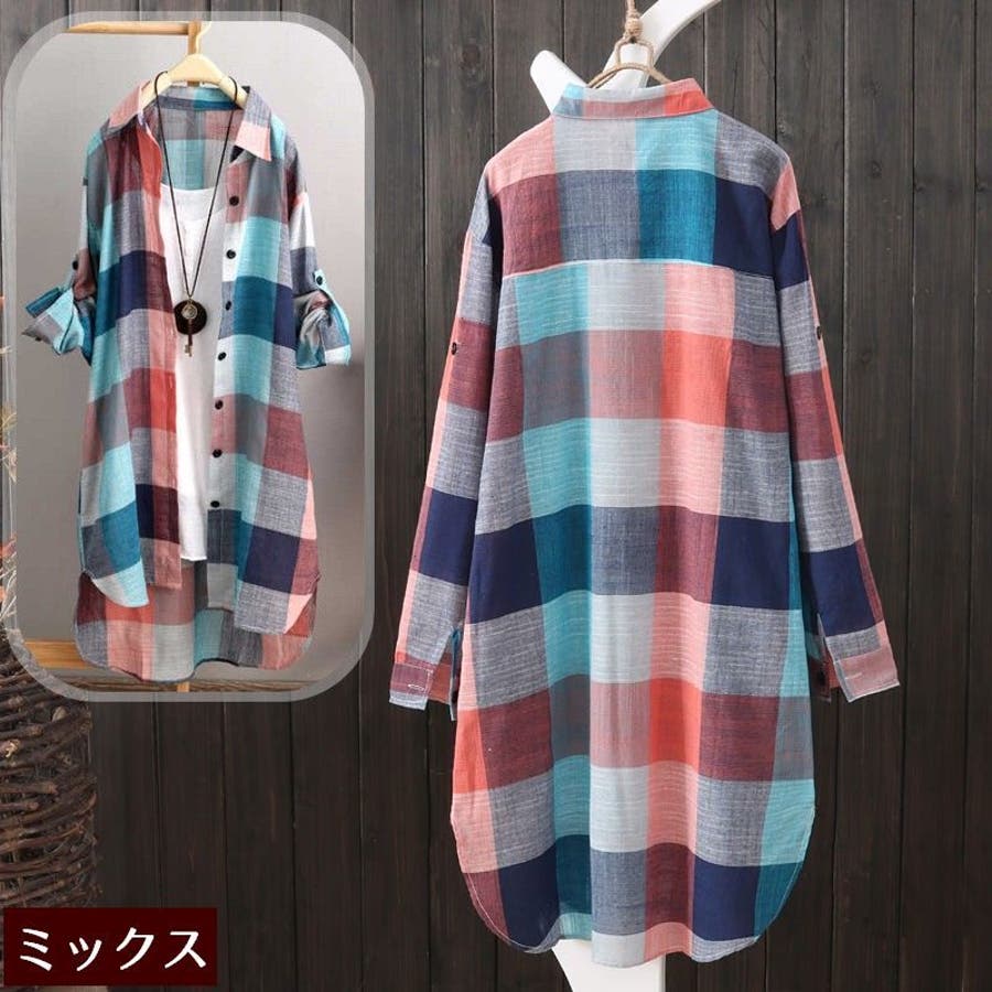 シャツワンピース 長袖 レディース