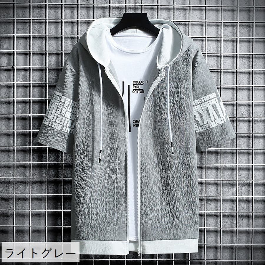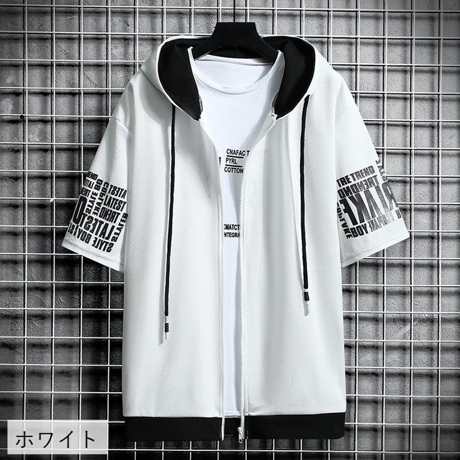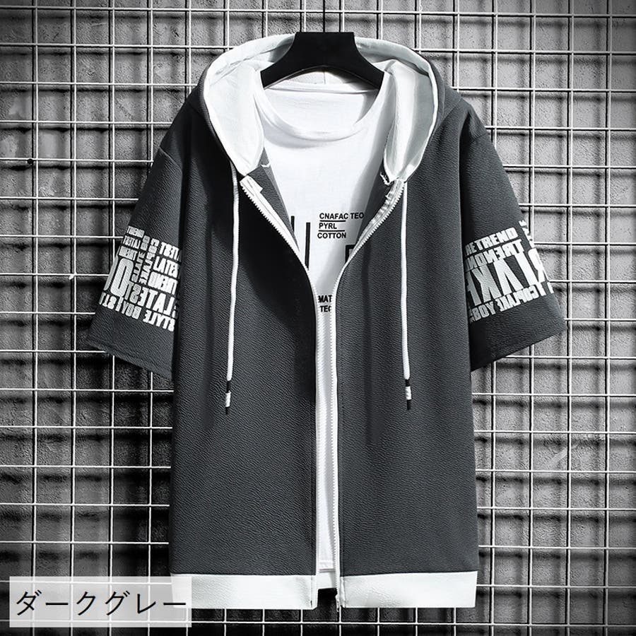 ジップアップパーカー 半袖 メンズ