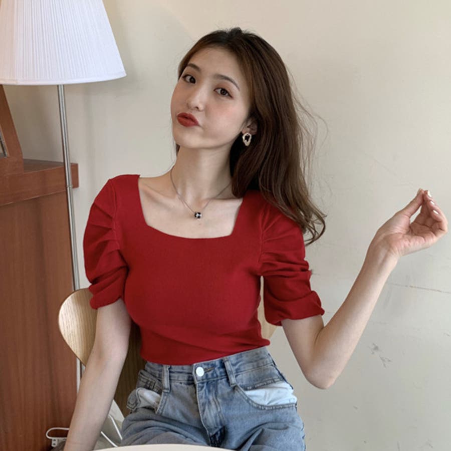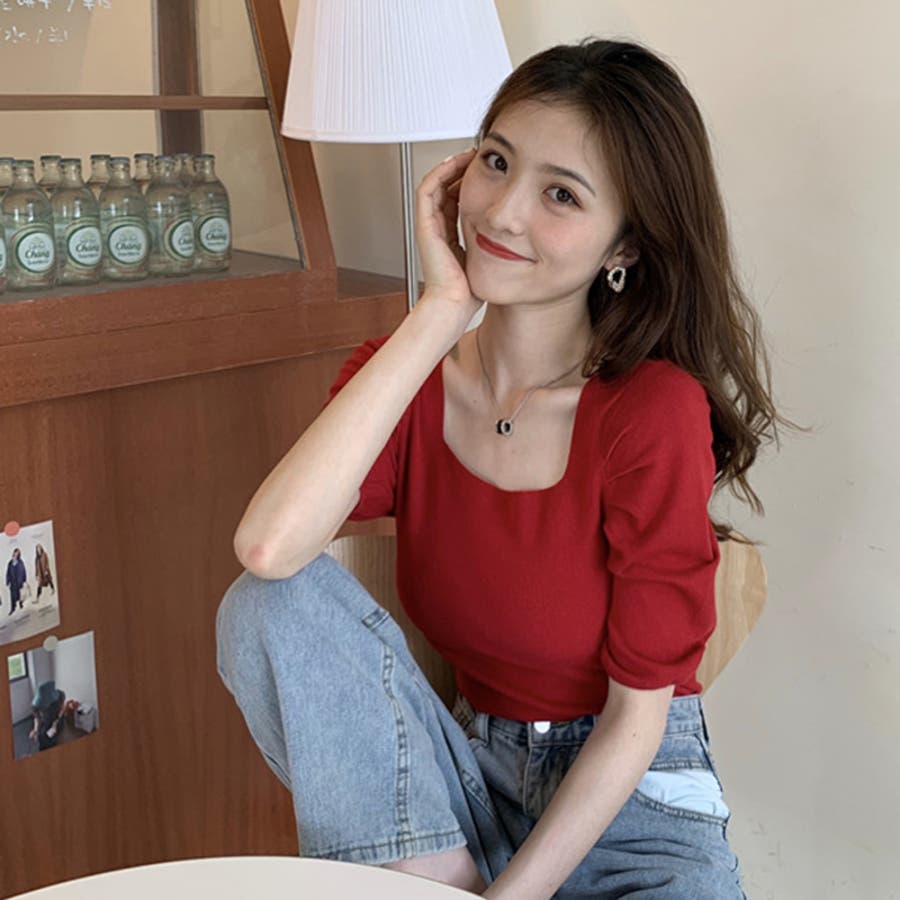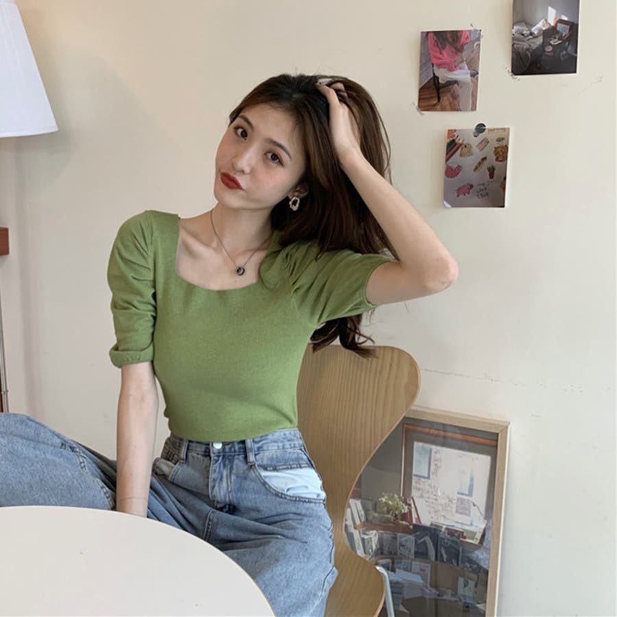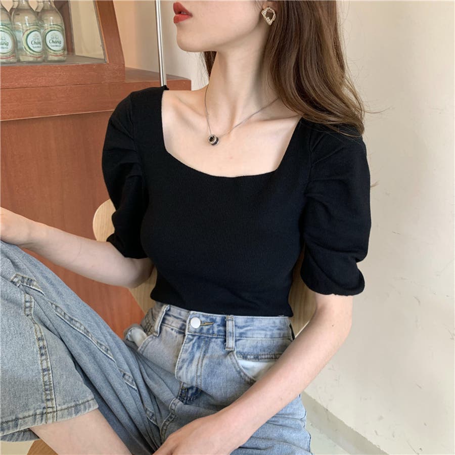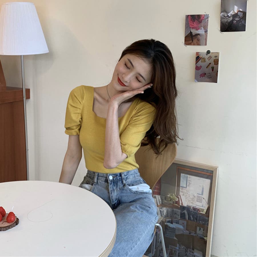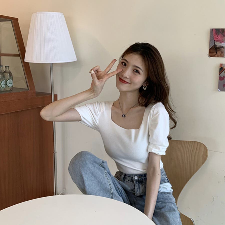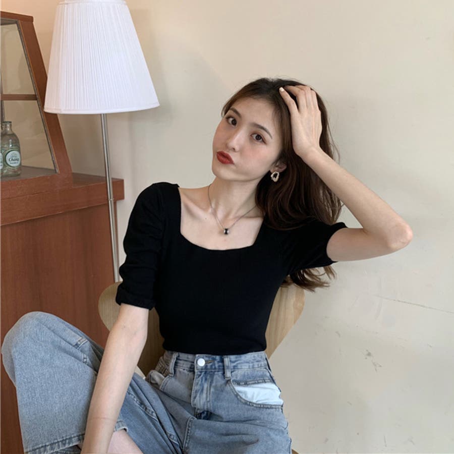 首元をきれいに見せてくれるスクエアネックがgood☆