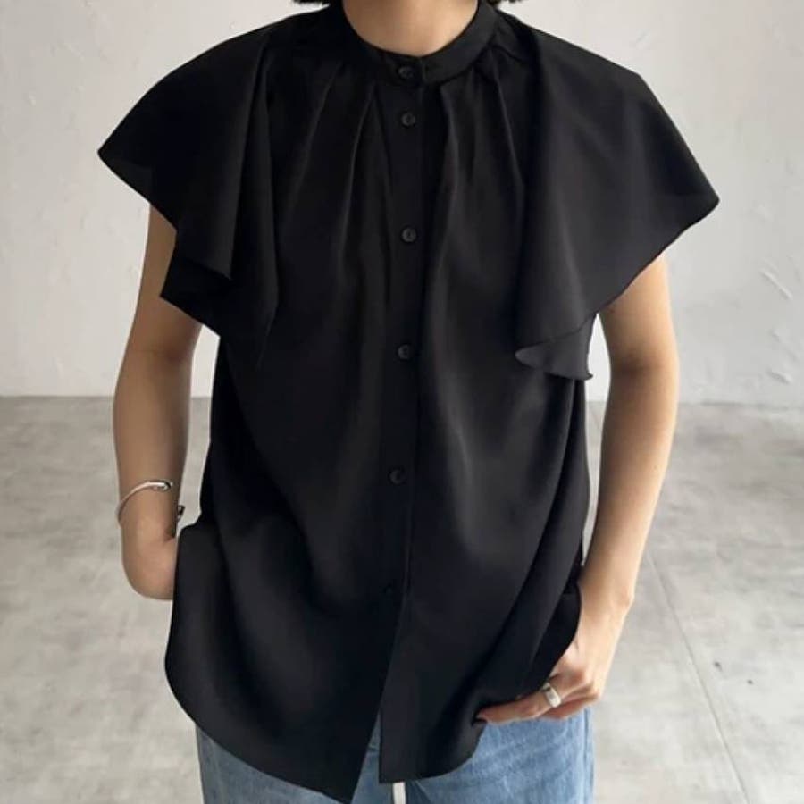 ブラウス ノースリーブ ビッグカラー付け衿