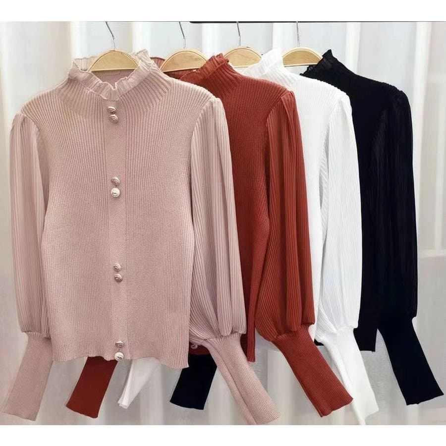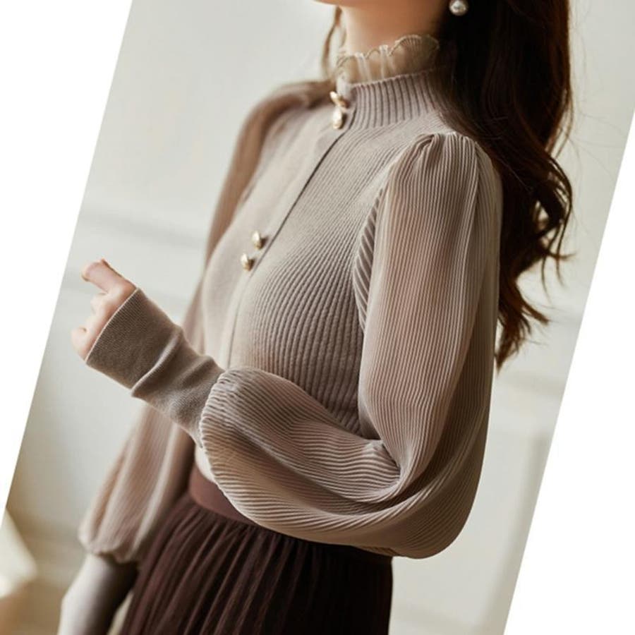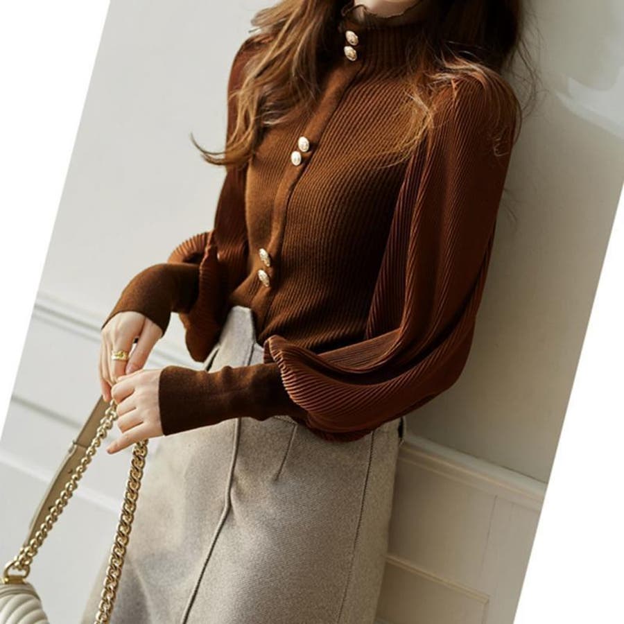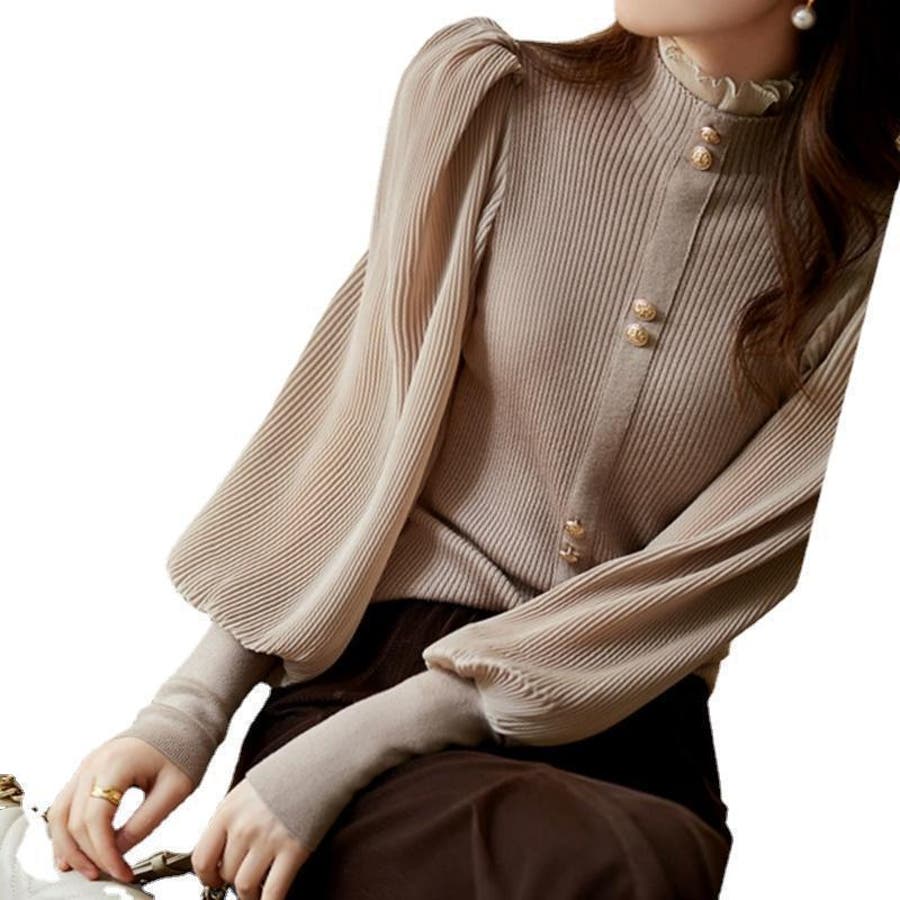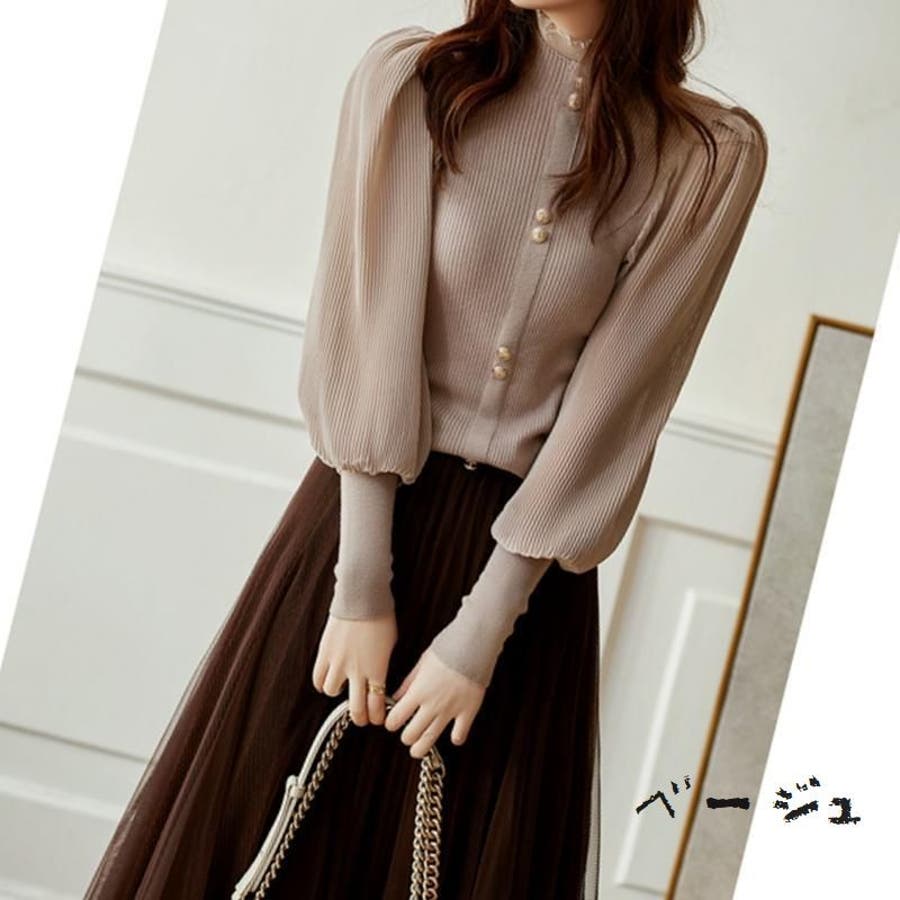 肩からふくらんだ袖のシルエット、首元のレース使いがおしゃれです♪