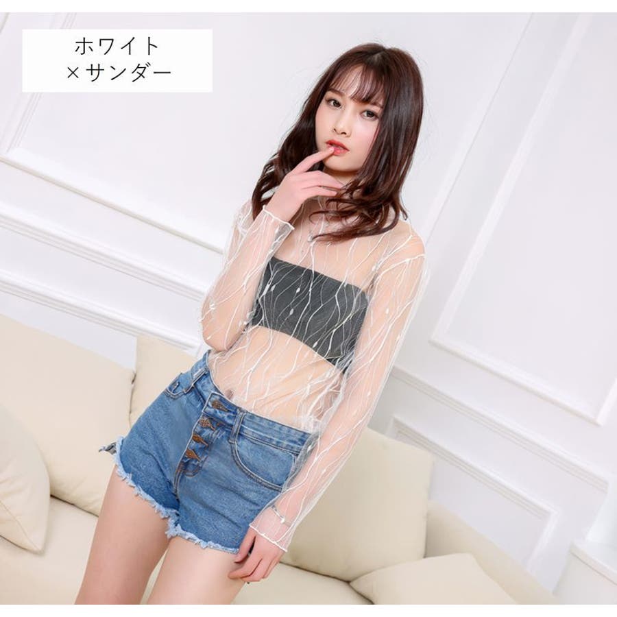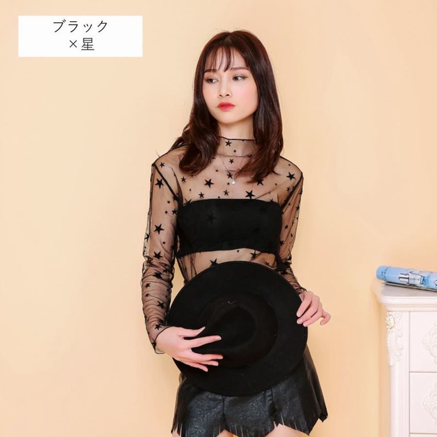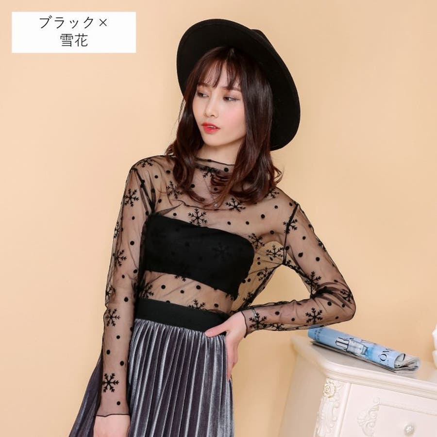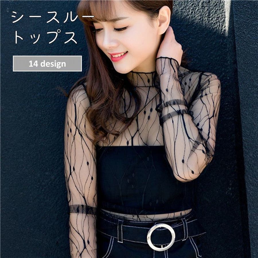 シースルートップス カットソー 長袖