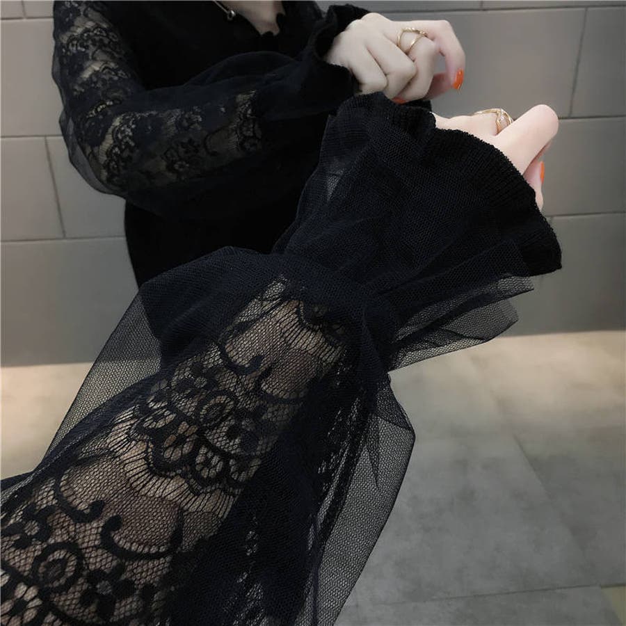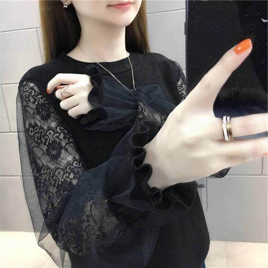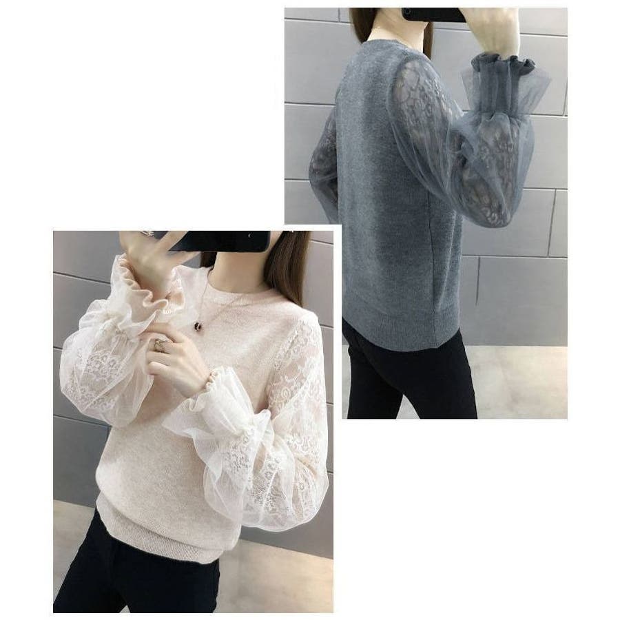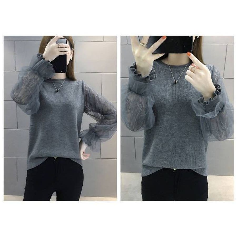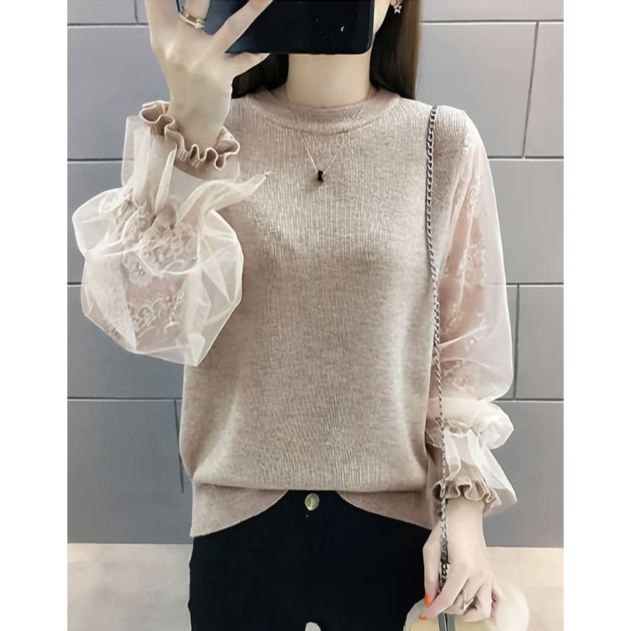 おしゃれな異素材ドッキング!クルーネックの長袖ニットソーです。