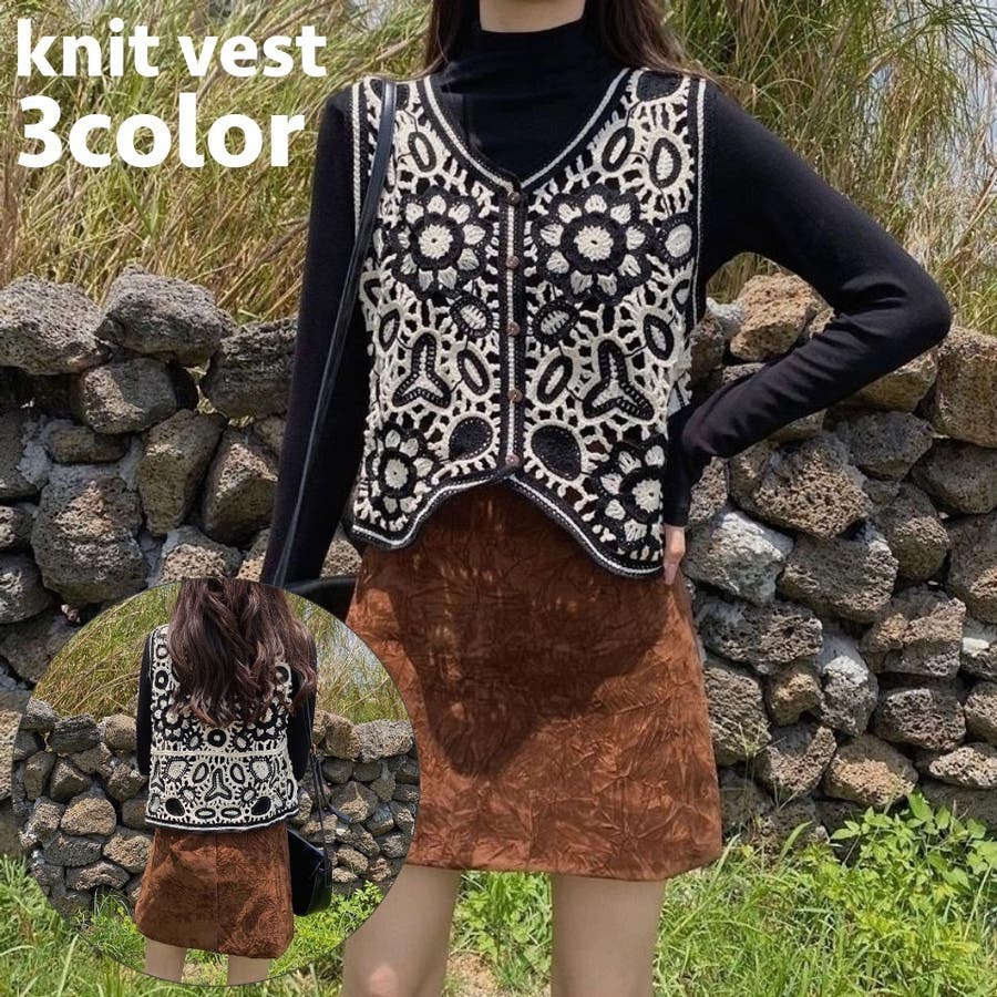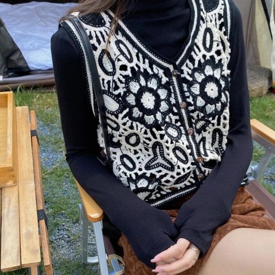 ベスト ニット 透かし編み
