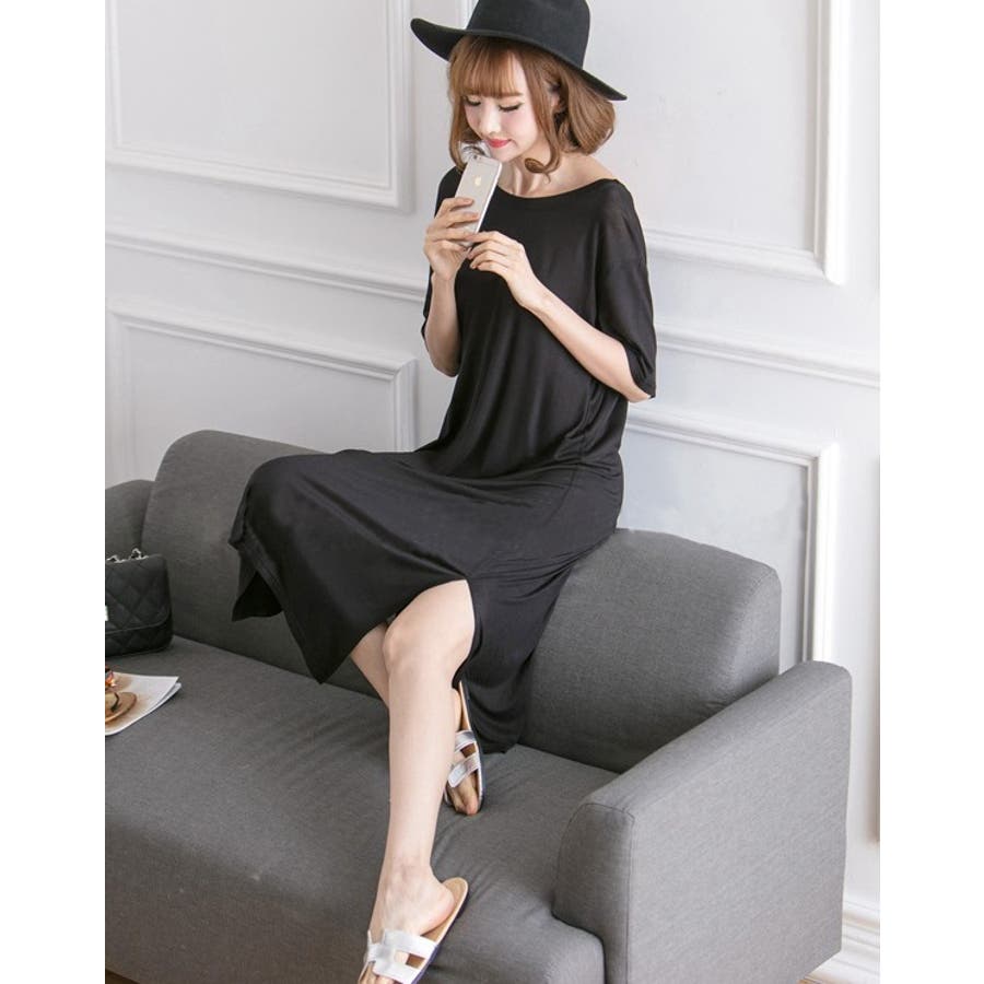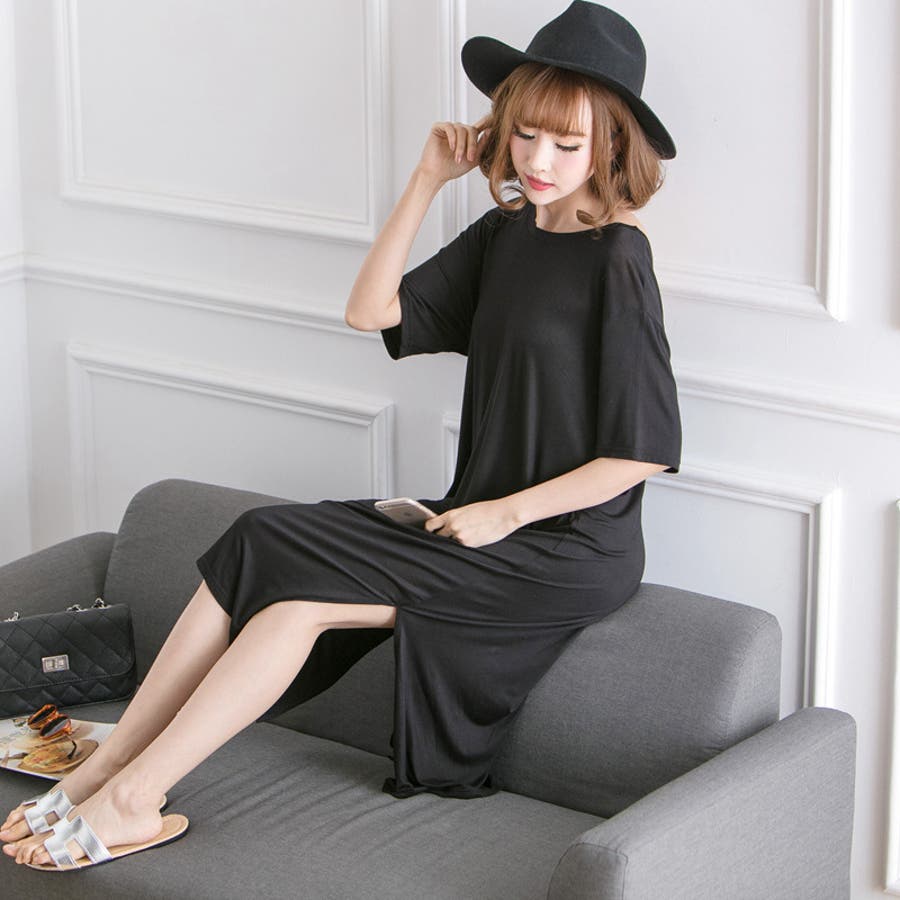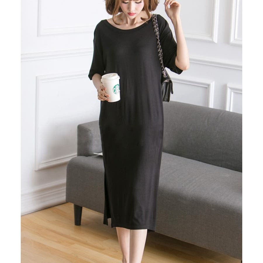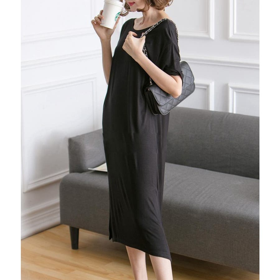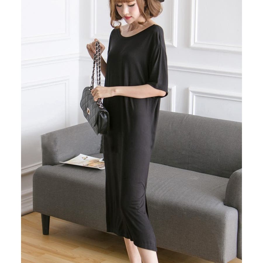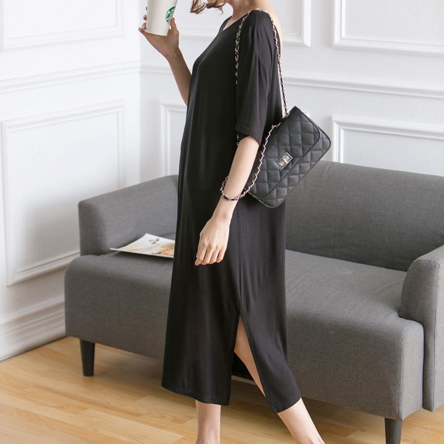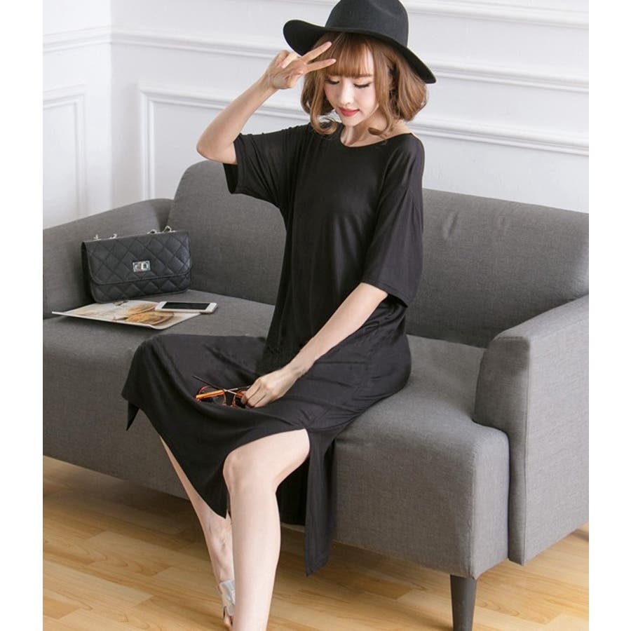 生地がやわらかく気持ちいいです。横のスリットは承知のうえでしたが、足さばきによっては太ももの下位まで見えるので(写真の通り)自分が着るとスリット深すぎるかな?とちょっと気後れ。部屋着なので問題ないですが。かわいいです!