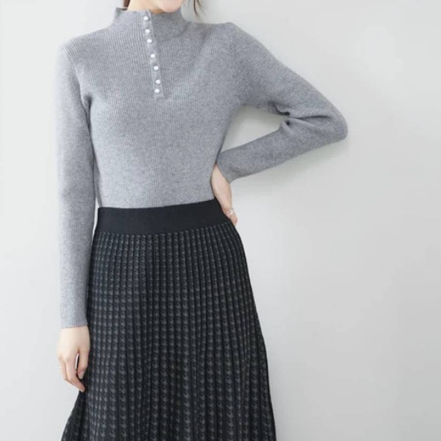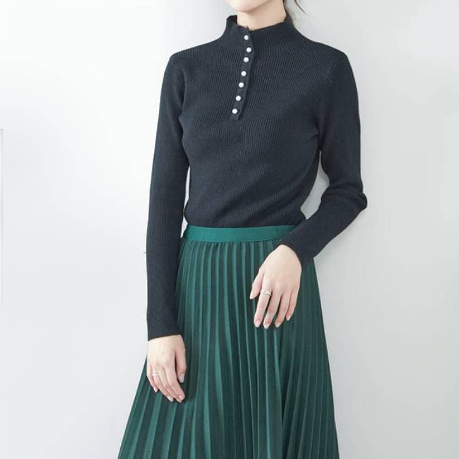 パールボタン使いのデザインはエレガントな雰囲気を演出します。