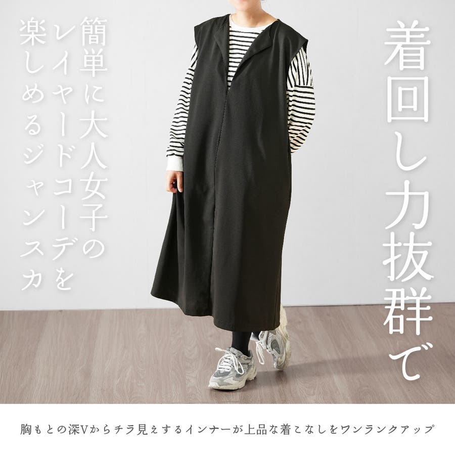 着回し力抜群でお手持ちのインナーと合わせれば、大人女子のレイヤードコーデが完成!インナーを変えるだけでガラッとで表情変わる、ジャンスカです。