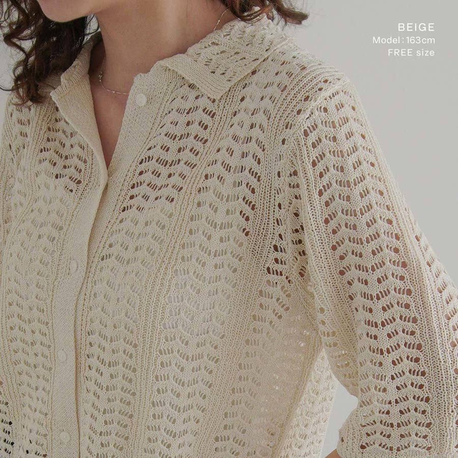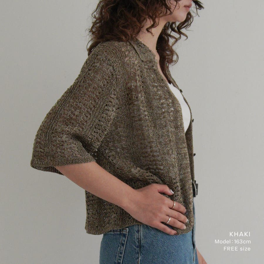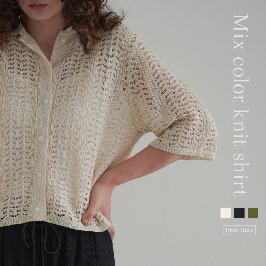 【ミックスカラーニットシャツ】 レディース サマーニット