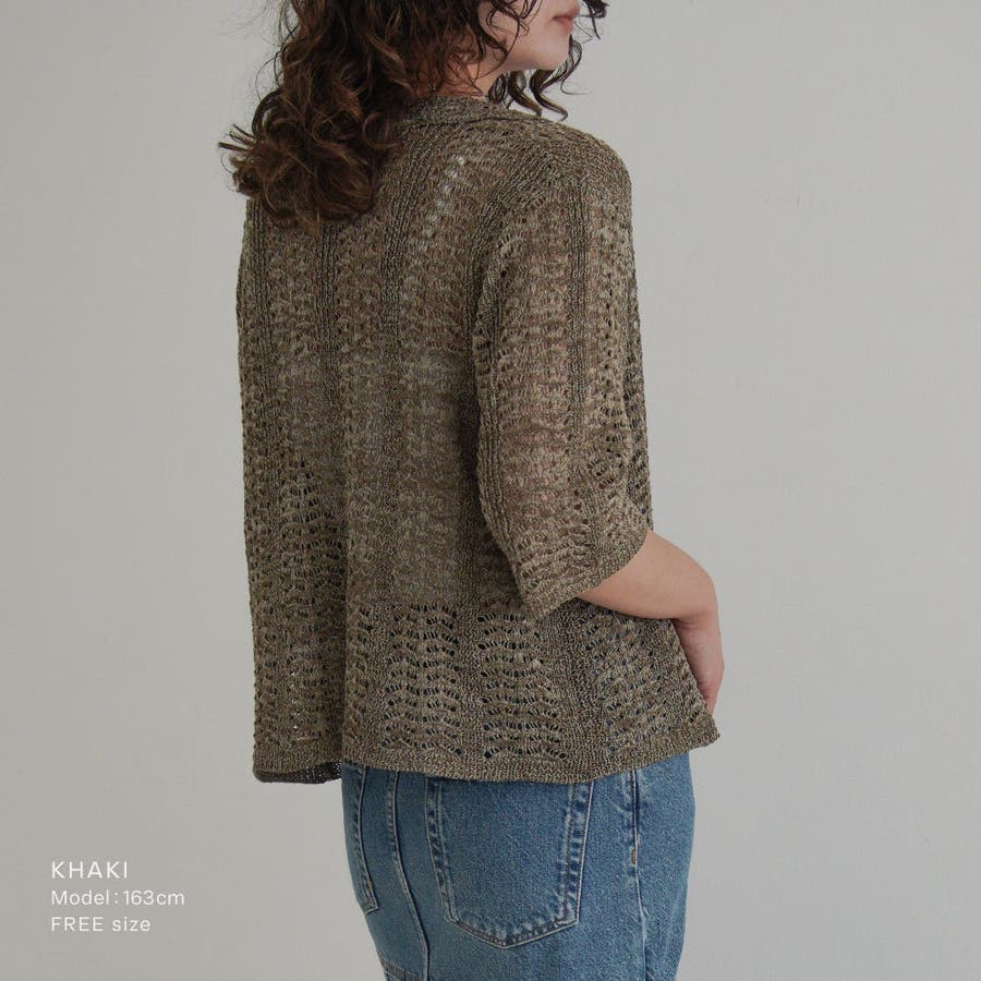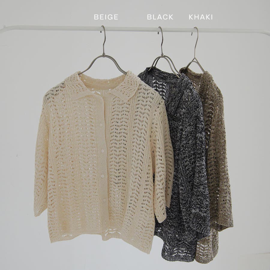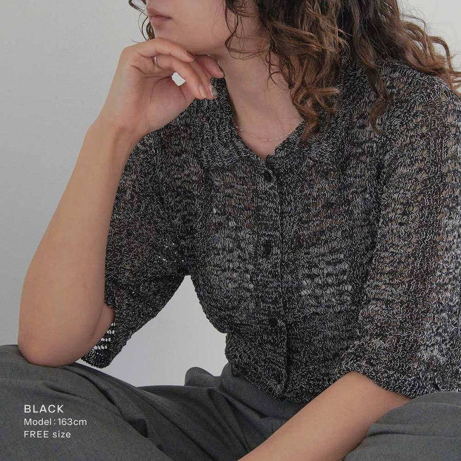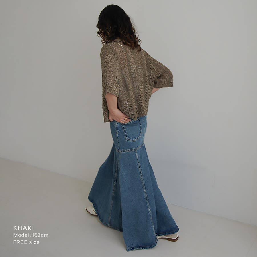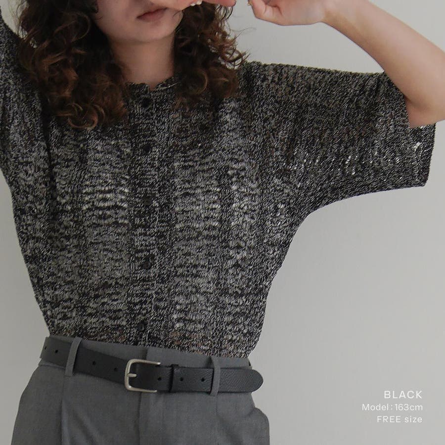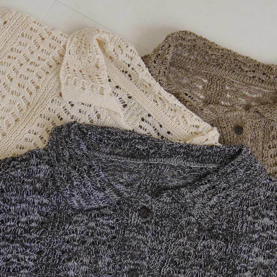 ミックス糸を使用し、編地に表情をプラス。1枚で抜け感が出せるので、シンプルなボトムでもこなれ感のあるスタイリングになります。