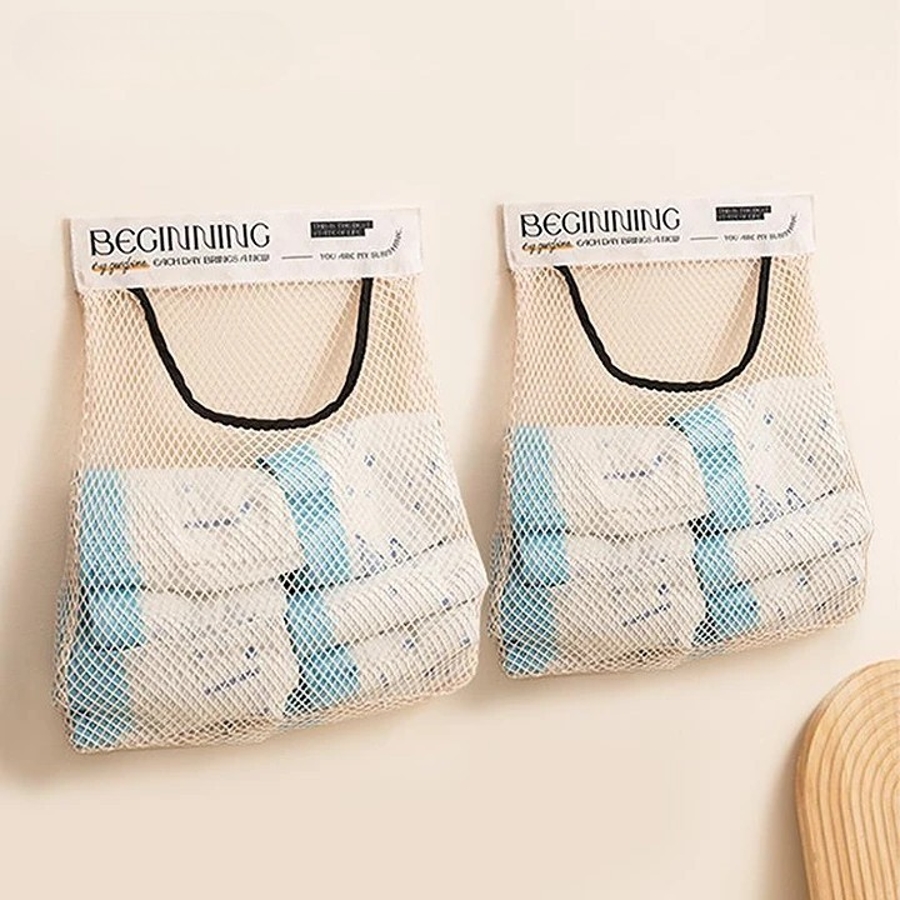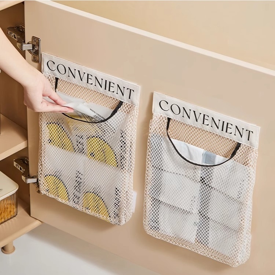 英字ロゴがかわいい、メッシュタイプのレジ袋ストッカーです。