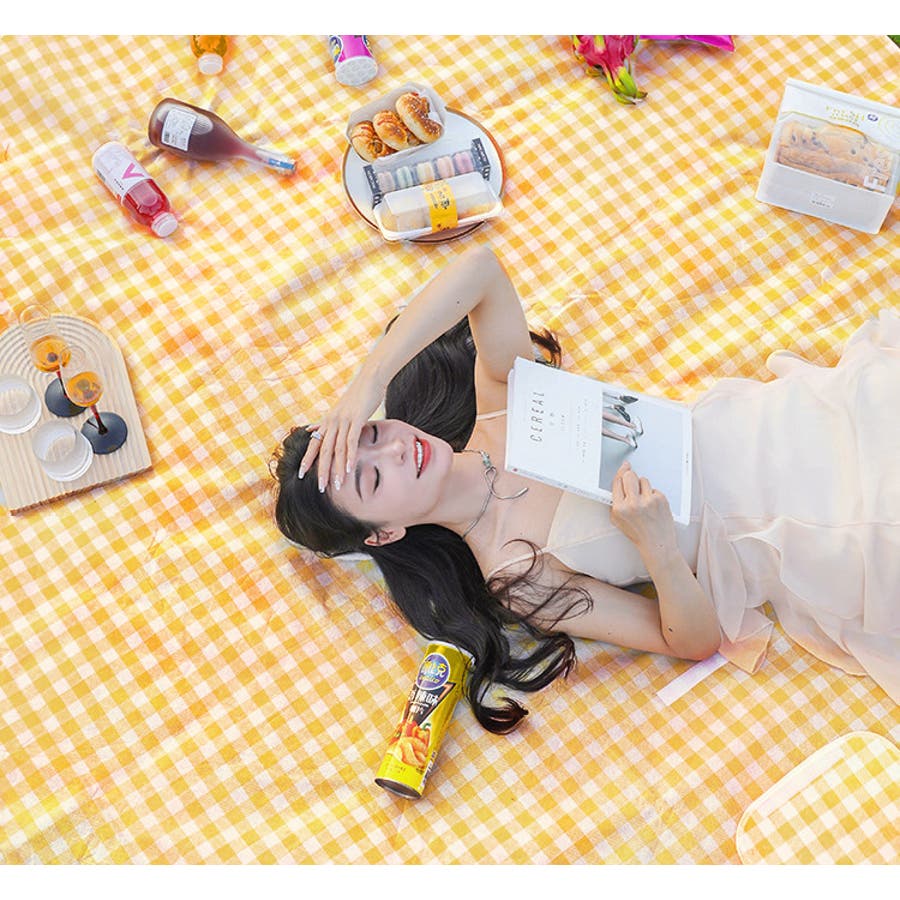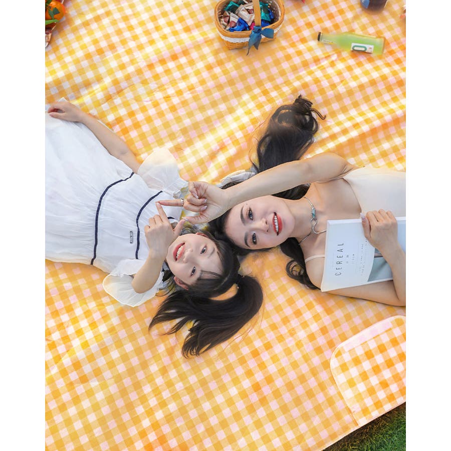 持ち運び簡単なチェック柄が可愛いレジャーシート