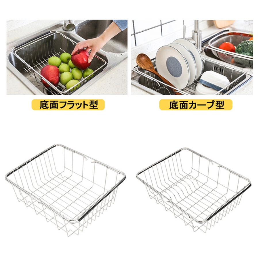 お皿やまな板などを立てて置けるカーブ型のスリットが入ったタイプの底面と、