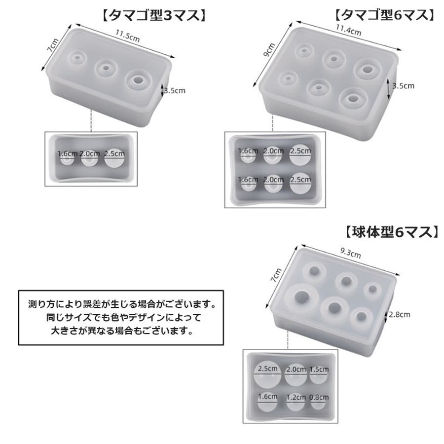 | タイプ×サイズ | 球体型6マス / タマゴ型3マス / タマゴ型6マス |