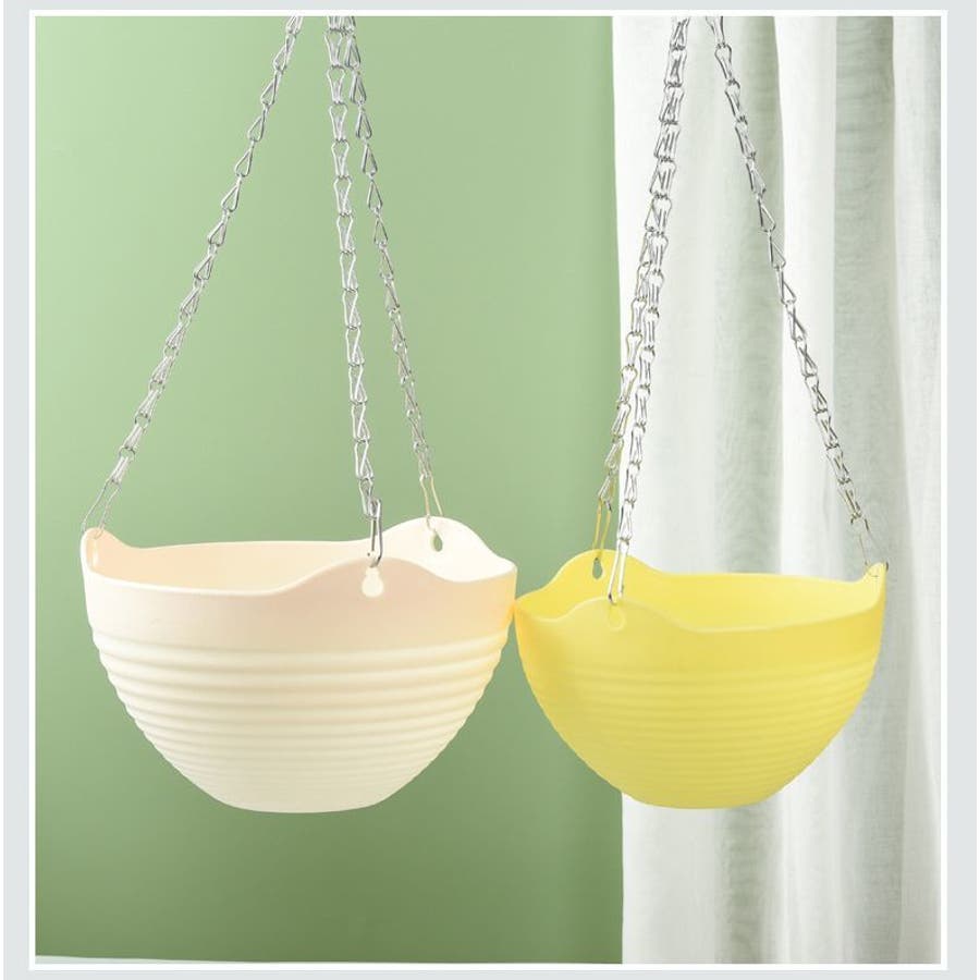 SサイズとLサイズの2種類があり、それぞれ吊り下げようのチェーン、排水ネットが付属しています。