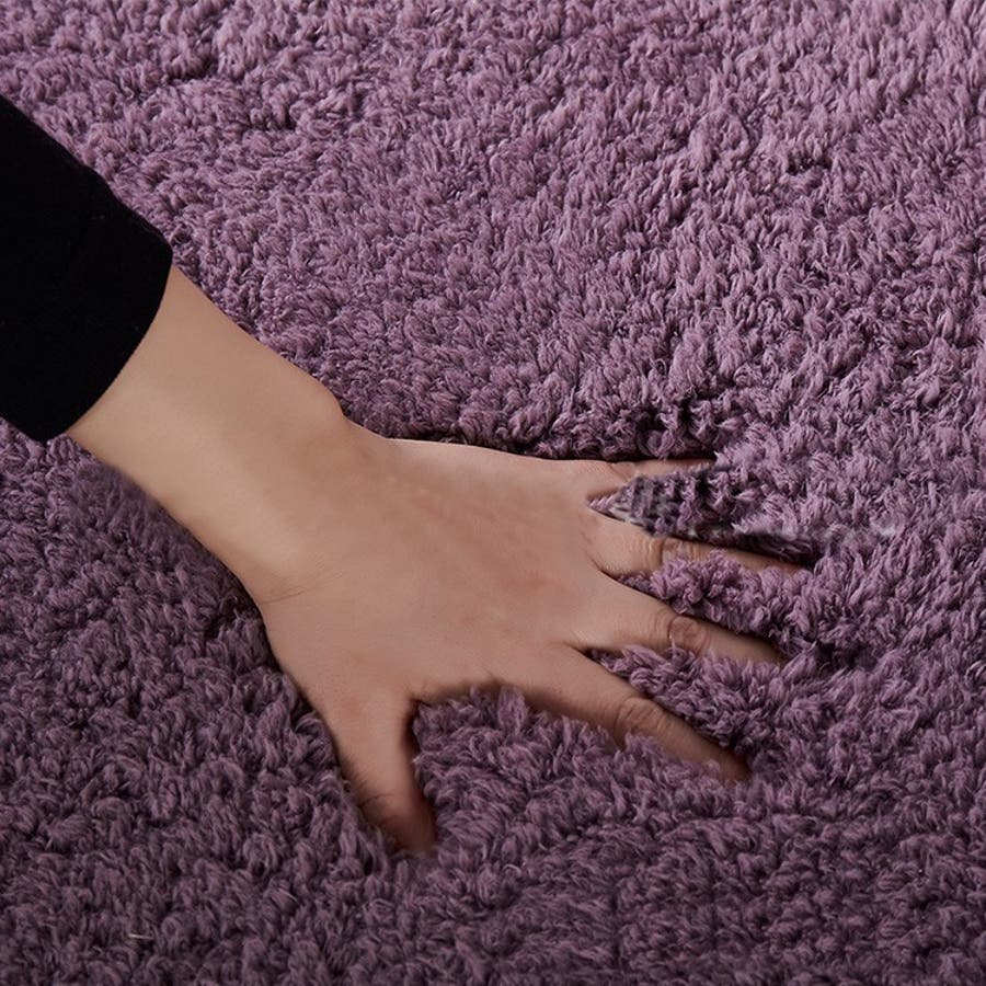 意外と軽いですが、毛足が長めでフカフカで厚みがあります。色味も画像とほぼ同じで、落ち着きのあるパープルなので、部屋に馴染んで合わせやすいです。