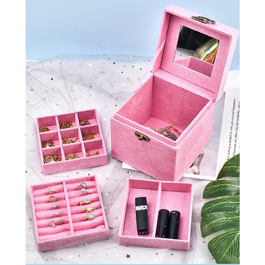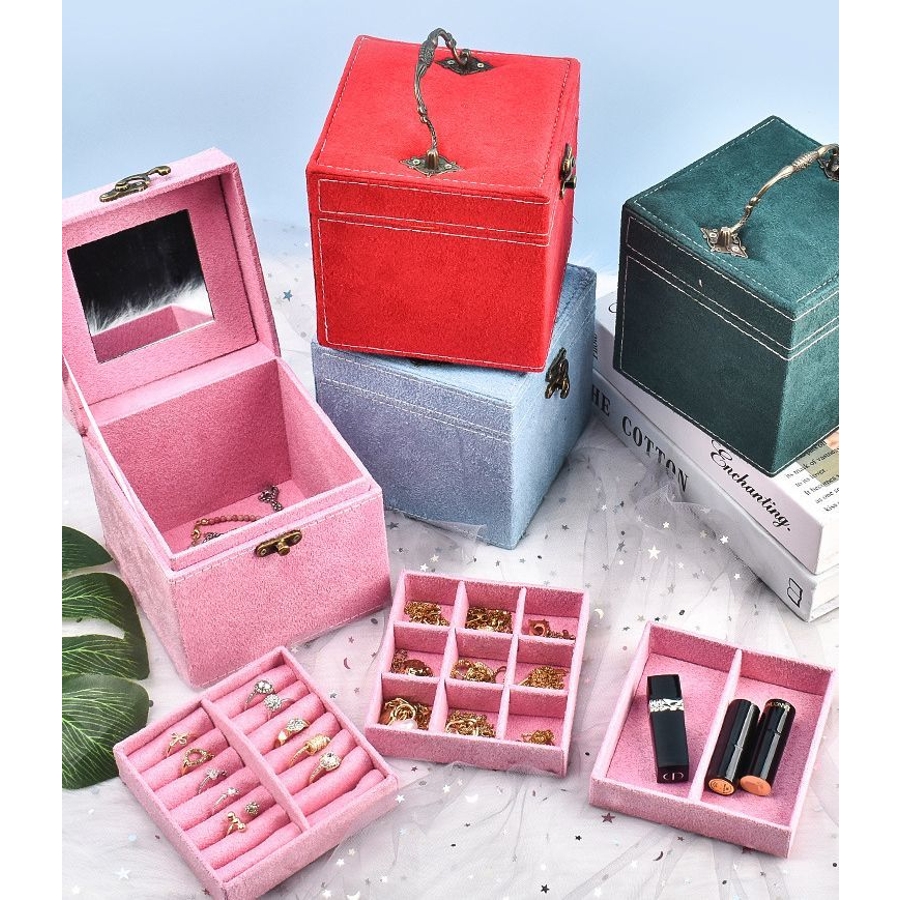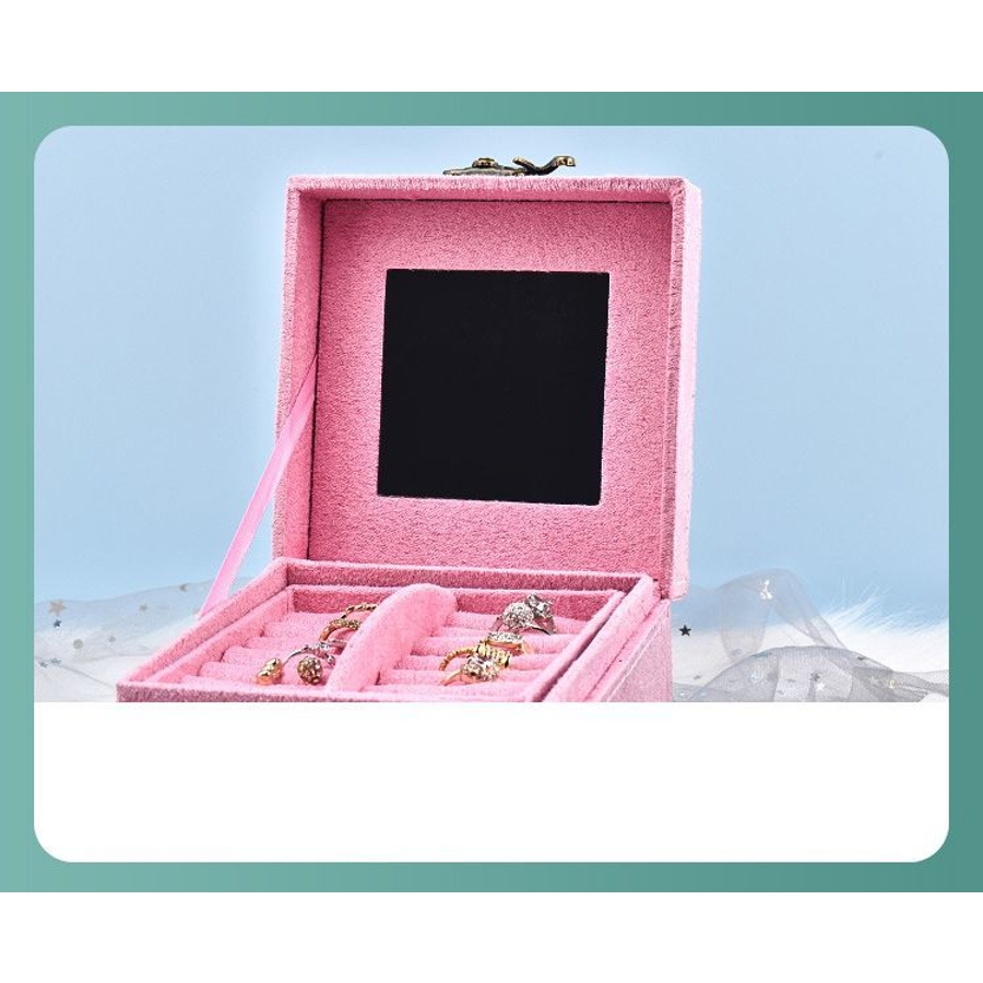 正方形スクエアキューブ型のミラー付きミニジュエリーボックスです。