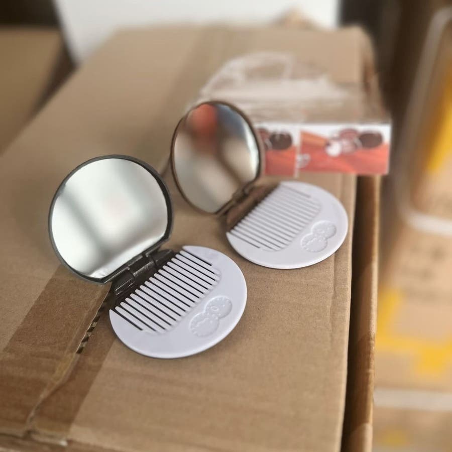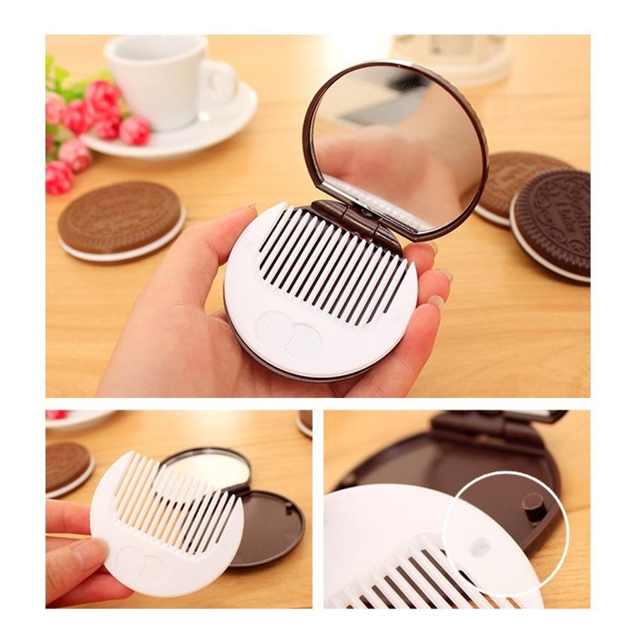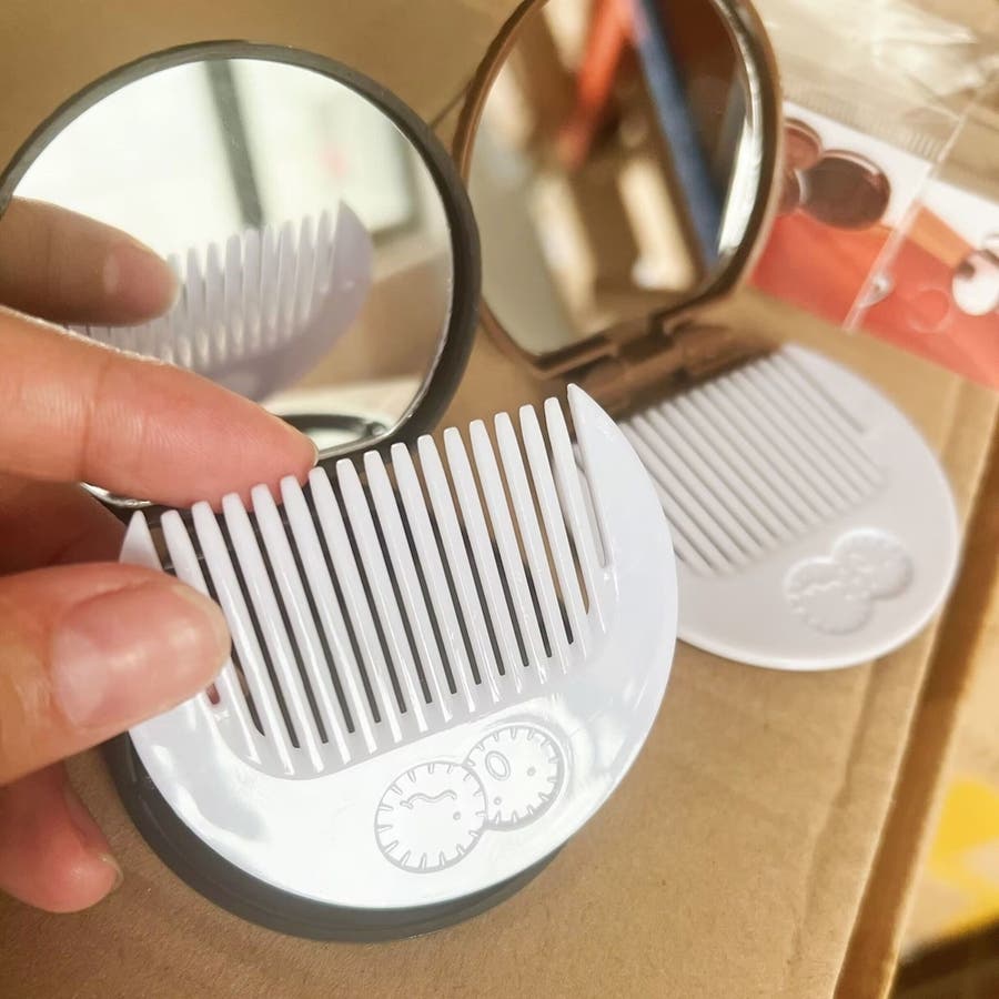 鏡が付いているので出先でのメイク直しや髪のセットにも便利♪