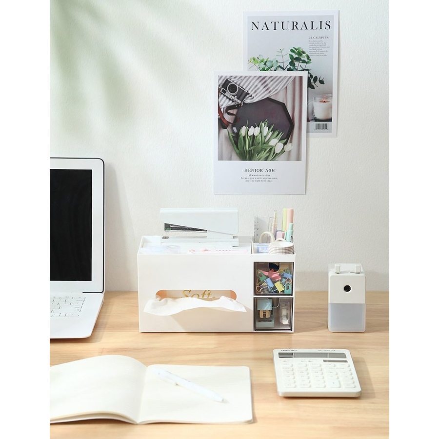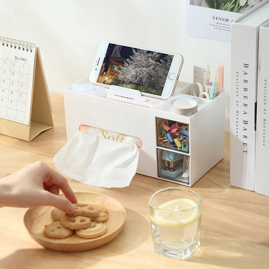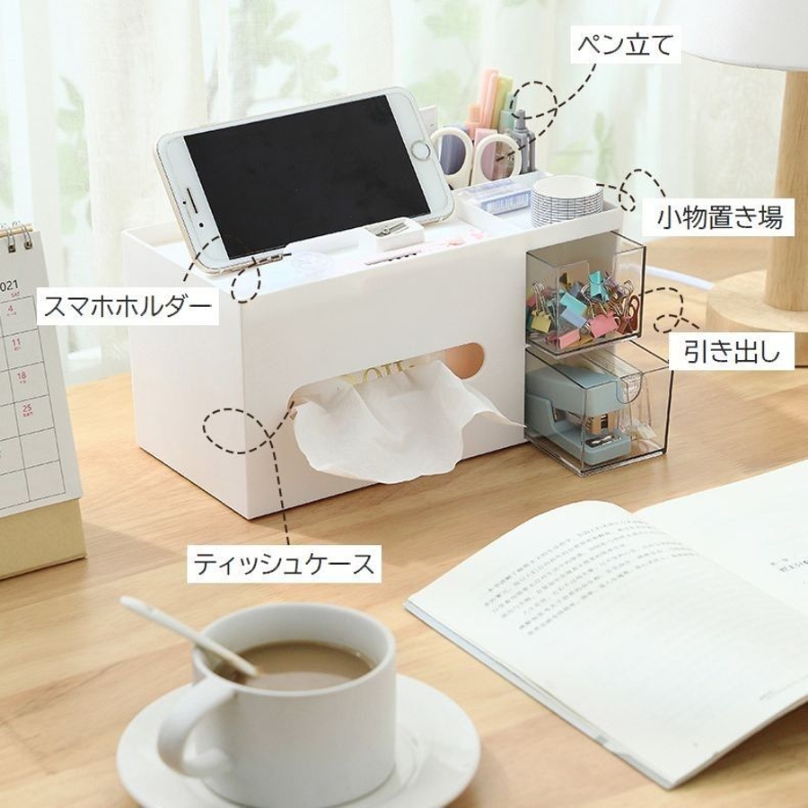 引き出しやペン立て付きの多機能型ティッシュケースです♪