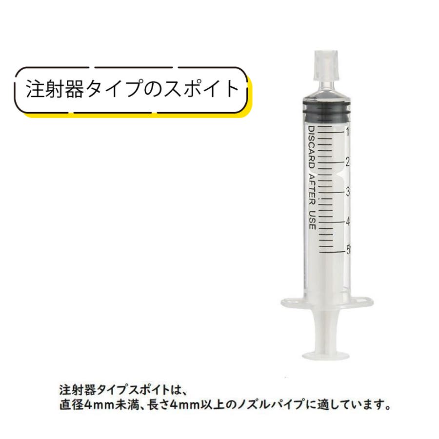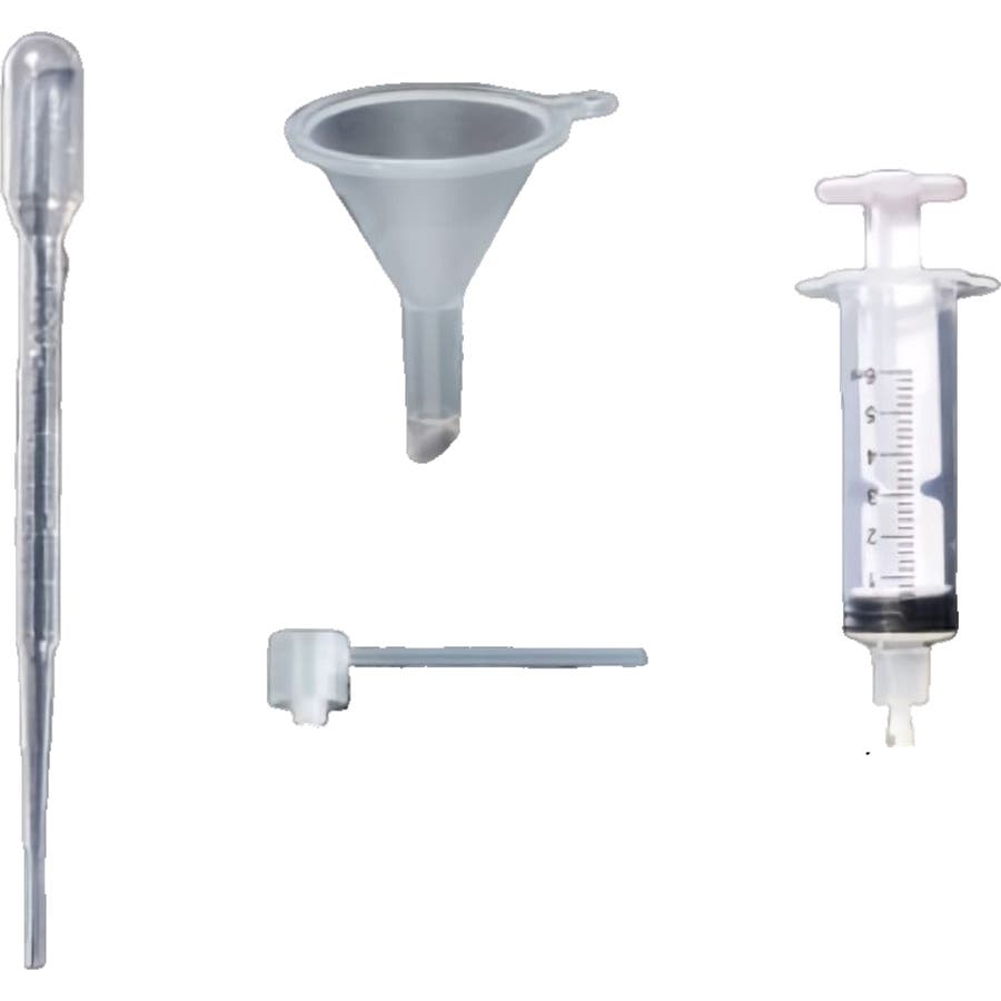 漏斗、スポイト、注射器タイプのスポイト、ポンプヘッドの4点がセットになっています。