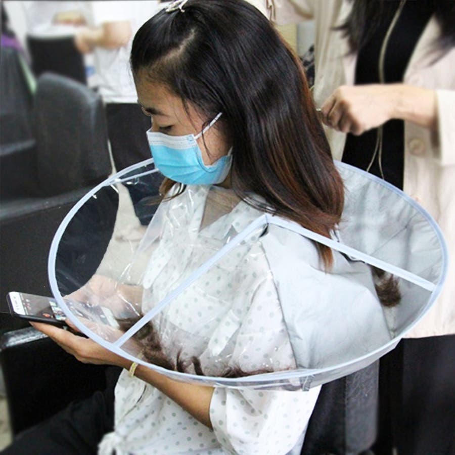 切った毛の処理が床に落ちずに楽ちん♪円形型の散髪ケープです。