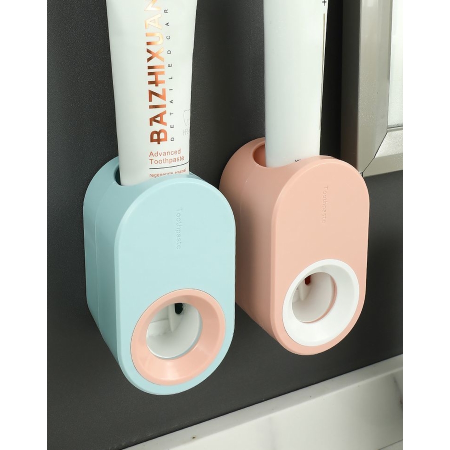 工具不要で簡単に取り付けられる、粘着式の歯磨き粉ディスペンサーです。