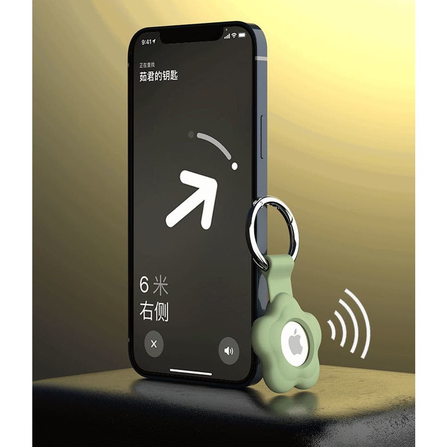 カラビナ付きフラワー型のソフトシリコン製Appleエアタグ用保護スリーブケースです。