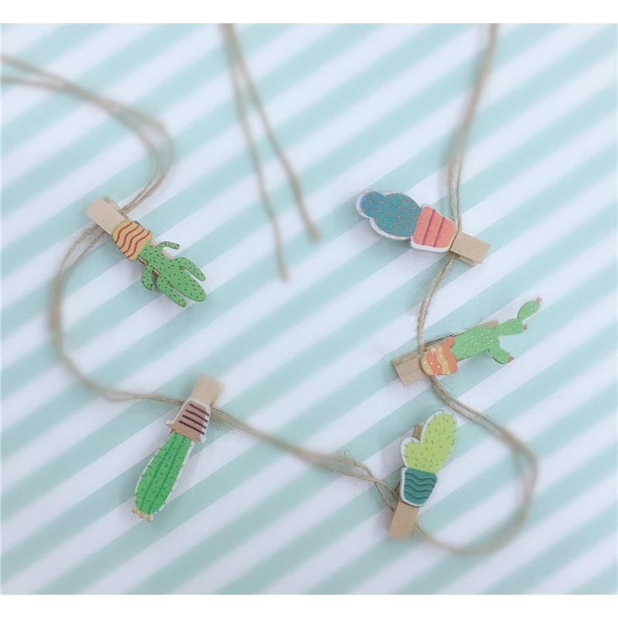サボテンの木製クリップ、とてもかわいいです。麻ひもも付属されていて、壁に吊るしてカードやフォトを挟んだりすることもできるので、とてもよかったです。