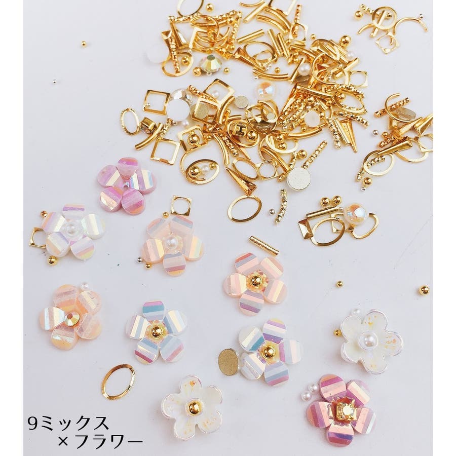 | カラー | 1ホワイト×フラワー / 2ピンク×フラワー / 3カラフル×フラワー / 4ブラック / 5ブルー / 6シャンパン / 7ホワイト×ストーン / 8ピンク×ストーン / 9ミックス×フラワー |