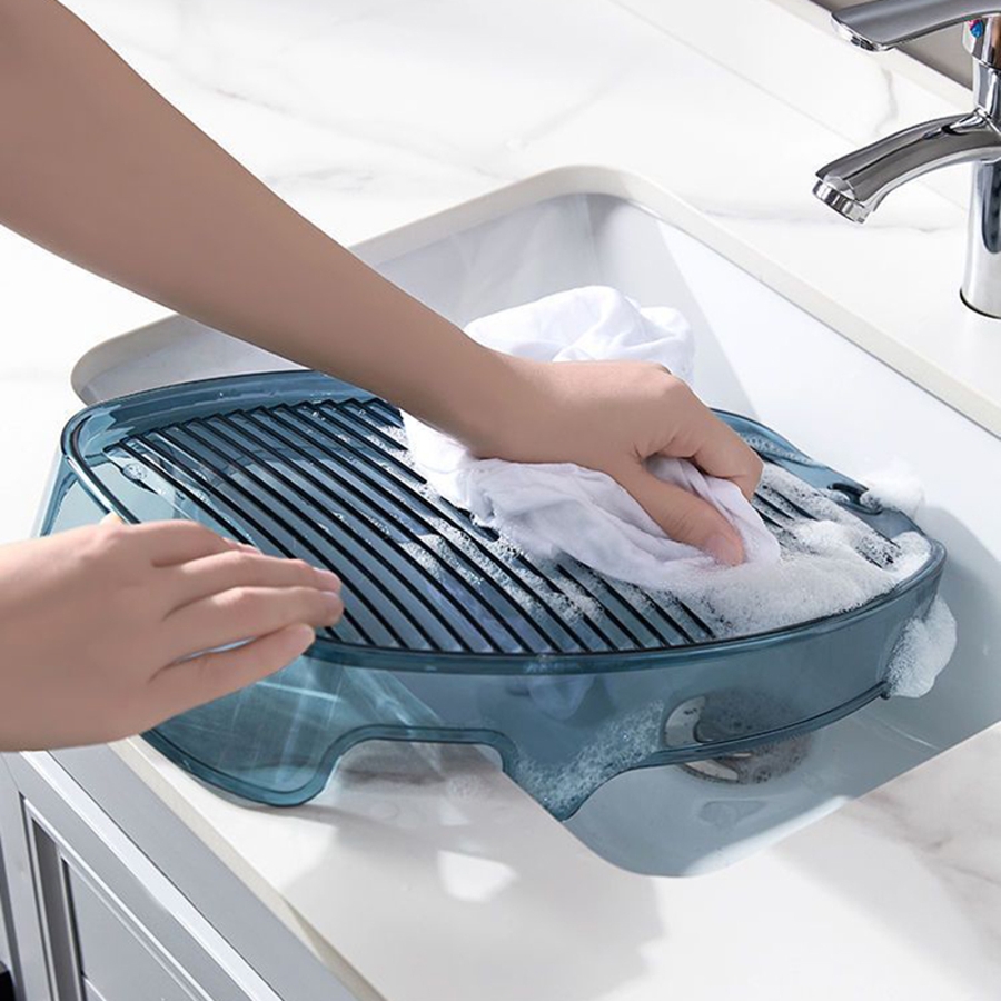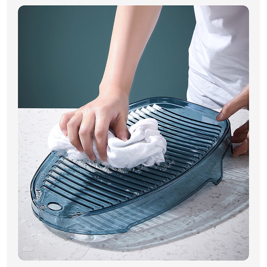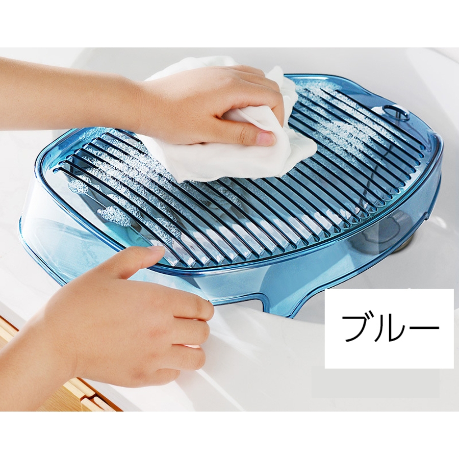 洗面台や洗い桶に引っかけやすい溝付き♪
