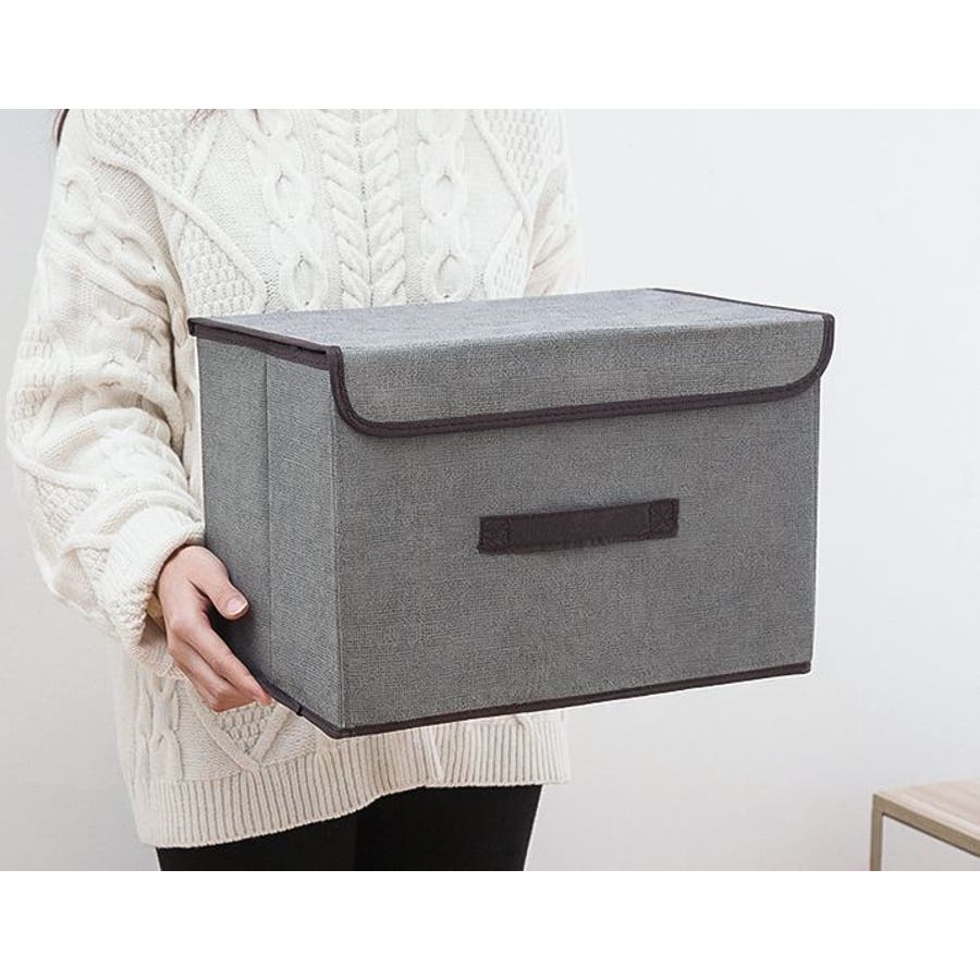 不織布オックスフォード生地の持ち手&フタ付き収納ボックスです。
