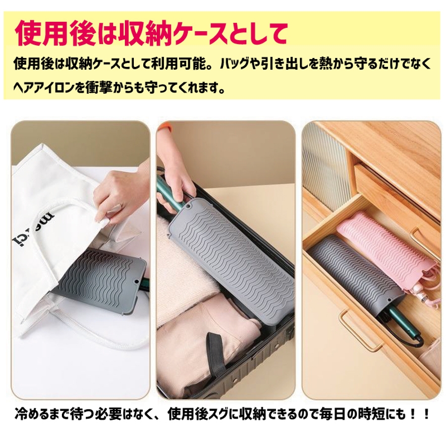 ヘアアイロン使用中は置き場用のマットとして、使用後は収納カバーとして◎