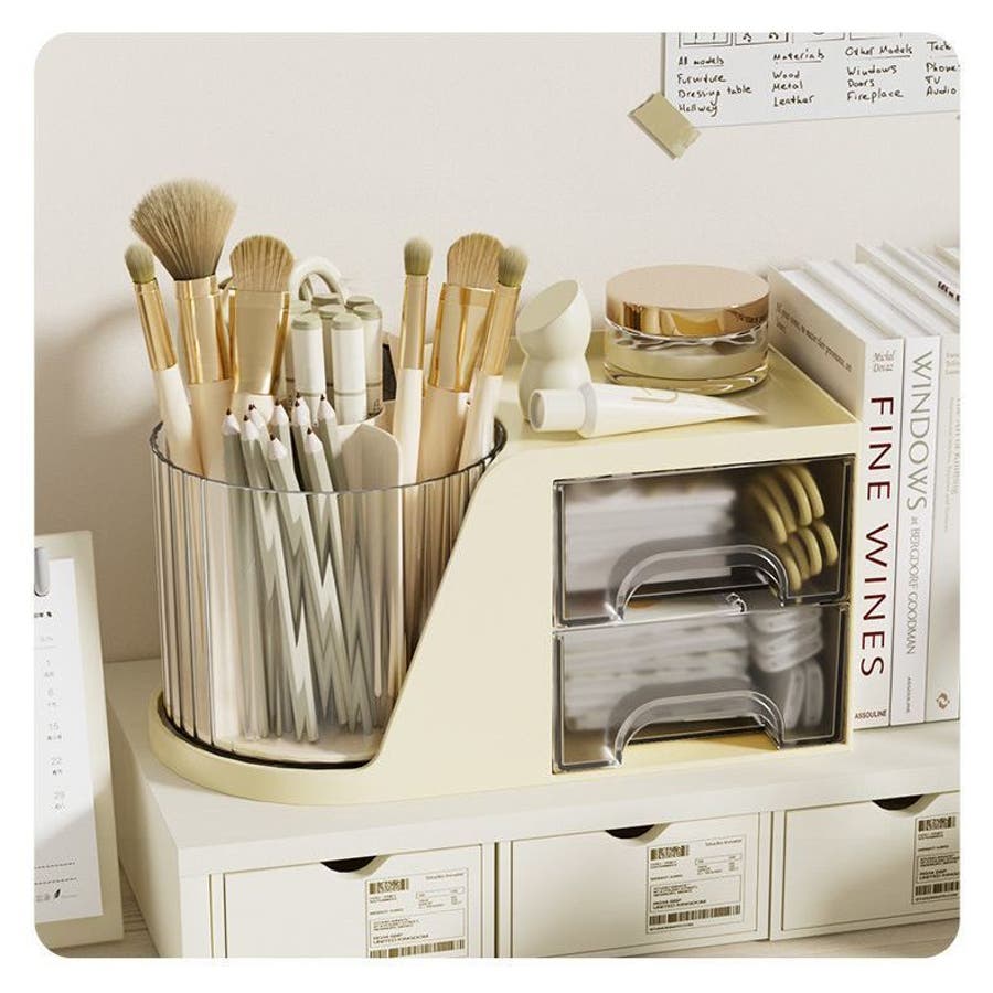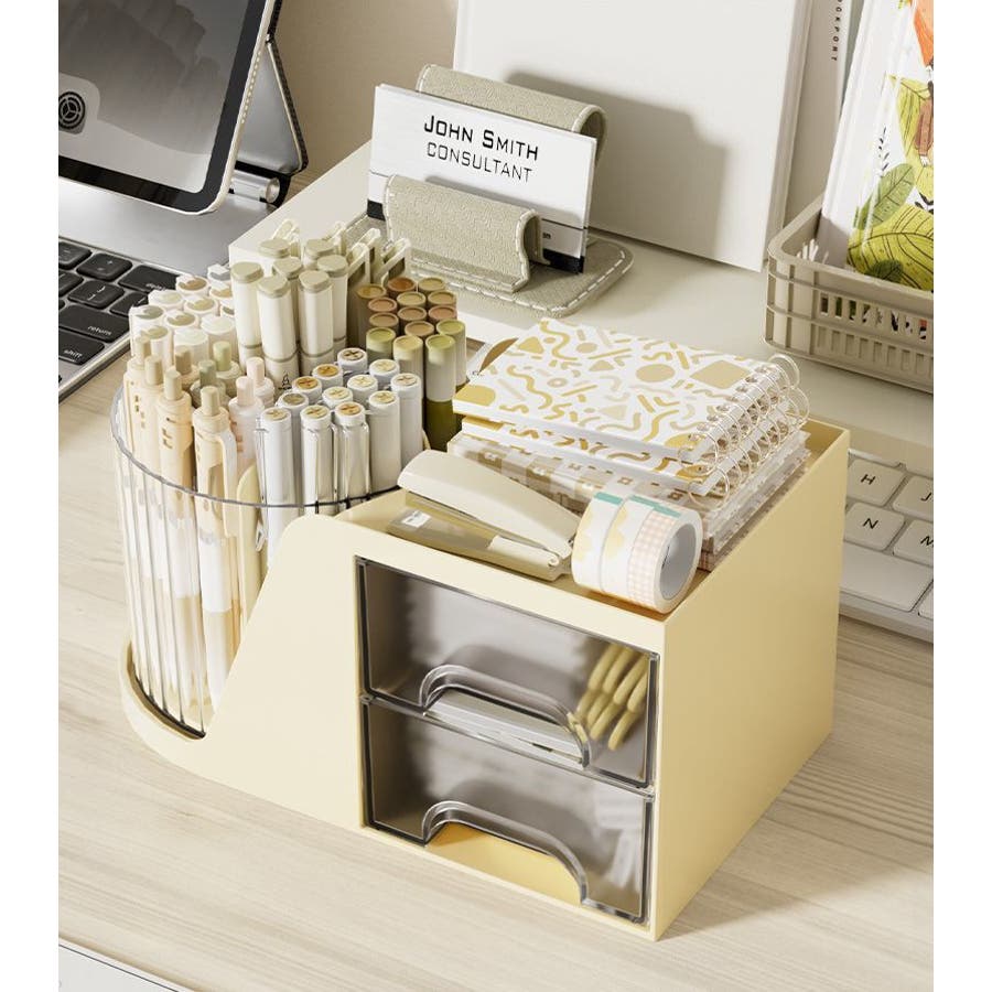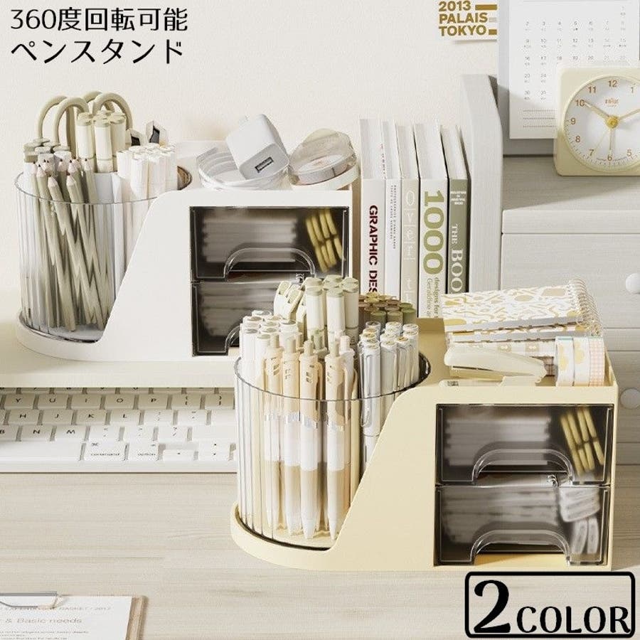 360度回転可能な引き出し&仕切り付きのペンスタンドです。