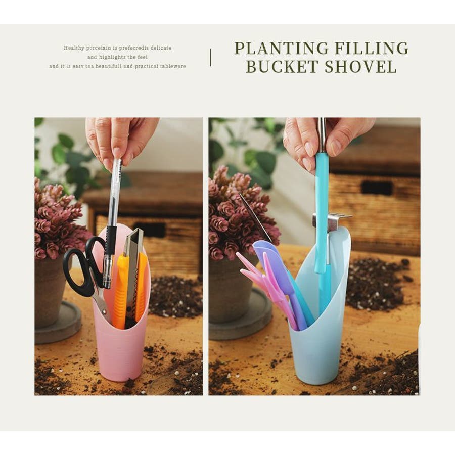スコップだけでなく文房具やツールを入れておくのもあり♪
