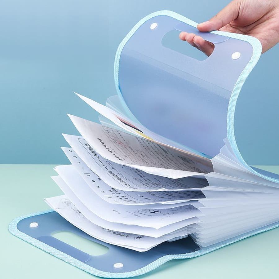 スナップボタン留めで開け閉めしやすく、書類の飛び出しも防いでくれます☆