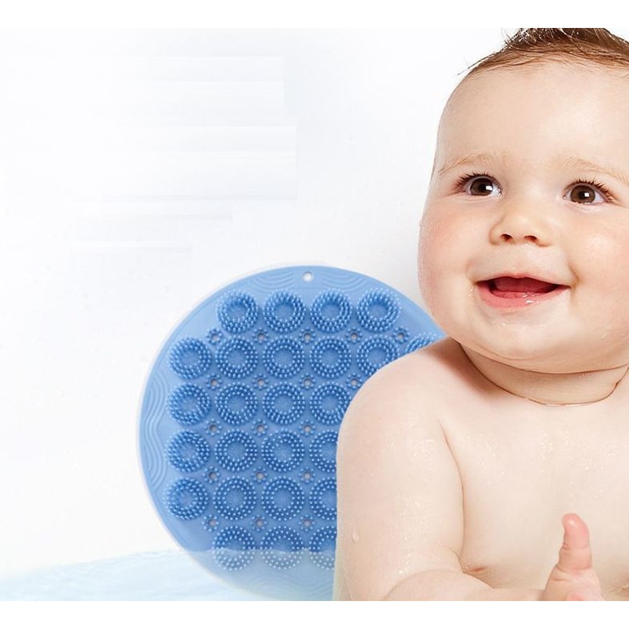 足だけでなく壁にくっつけて背中にも使えるので汗っかきなこどもが一人で洗えます。硬さもちょうどいいです。