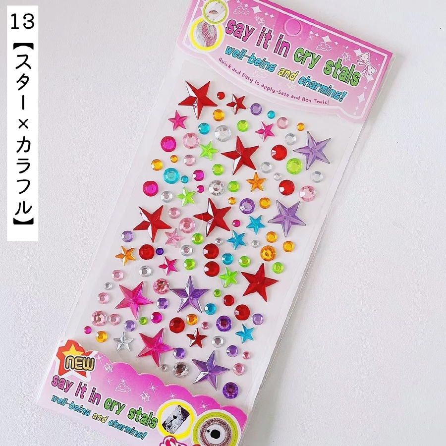 1【ハート×カラフル】,10【ハート×ブルー×ピンク】,11【丸型×カラフル】,12【梅×カラフル】,13【スター×カラフル】,2【ハート×パープル】,3【ハート×ブルー】,4【ハート×カラフル】,5【ハート×シャンパン】,6【ハート×ブラック】,7【ハート×クリア】,8【ハート×ピンク】,9【ハート×ローズ】