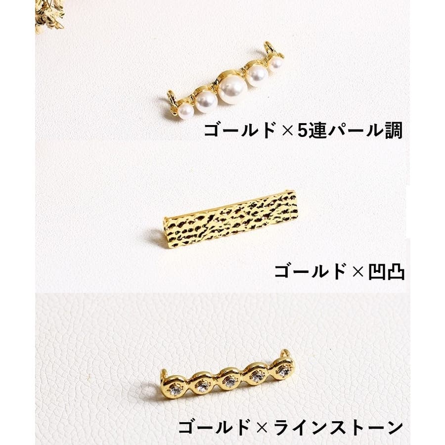| デザイン | ゴールド×3連パール調 / ゴールド×5連パール調 / ゴールド×凹凸 / ゴールド×チェーン / ゴールド×フラット / ゴールド×ライン / ゴールド×ラインストーン / ゴールド×リボン / ゴールド×スター / ゴールド×V字 / ゴールド×ウェーブ / シルバー×3連パール調 / シルバー×チェーン / シルバー×ライン / シルバー×リボン / シルバー×スター / シルバー×V字 / シルバー×ウェーブ |