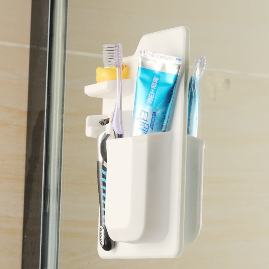 洗面所や浴室の壁面や鏡に取り付けて衛生的に収納できる、歯ブラシホルダーです。