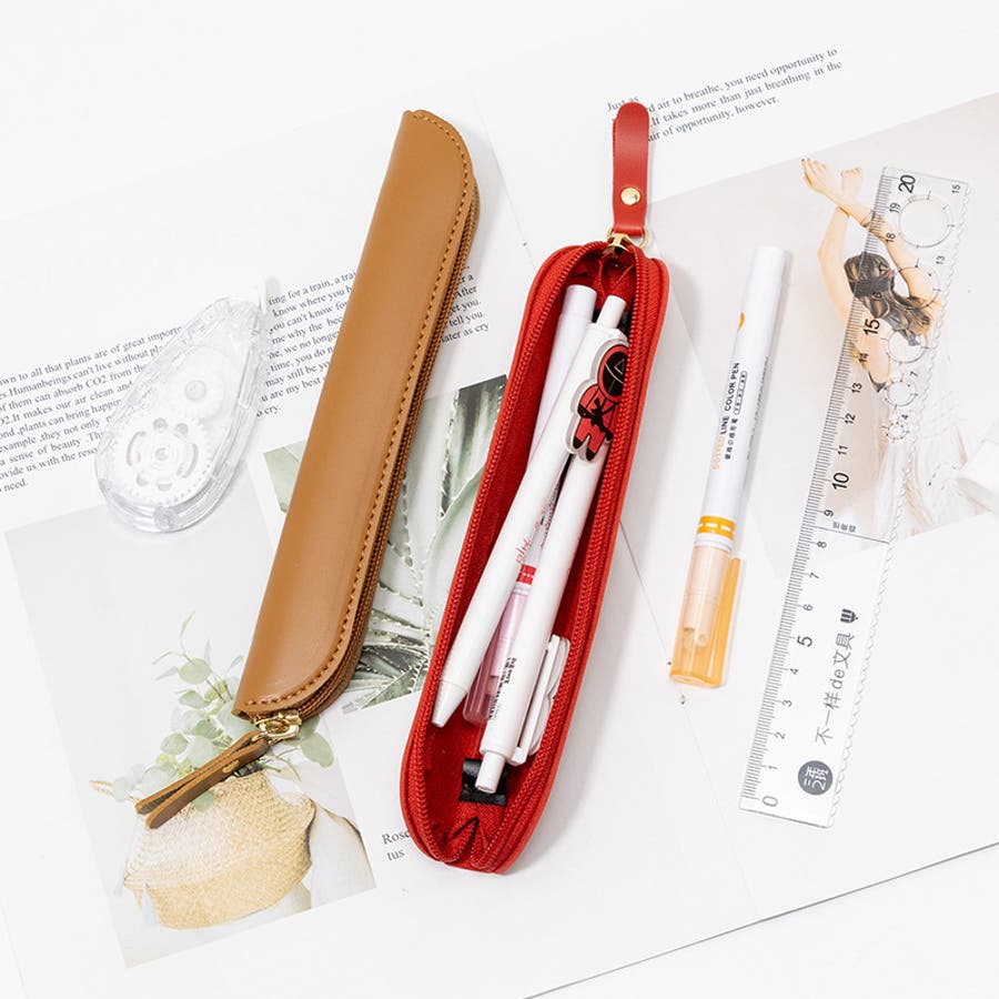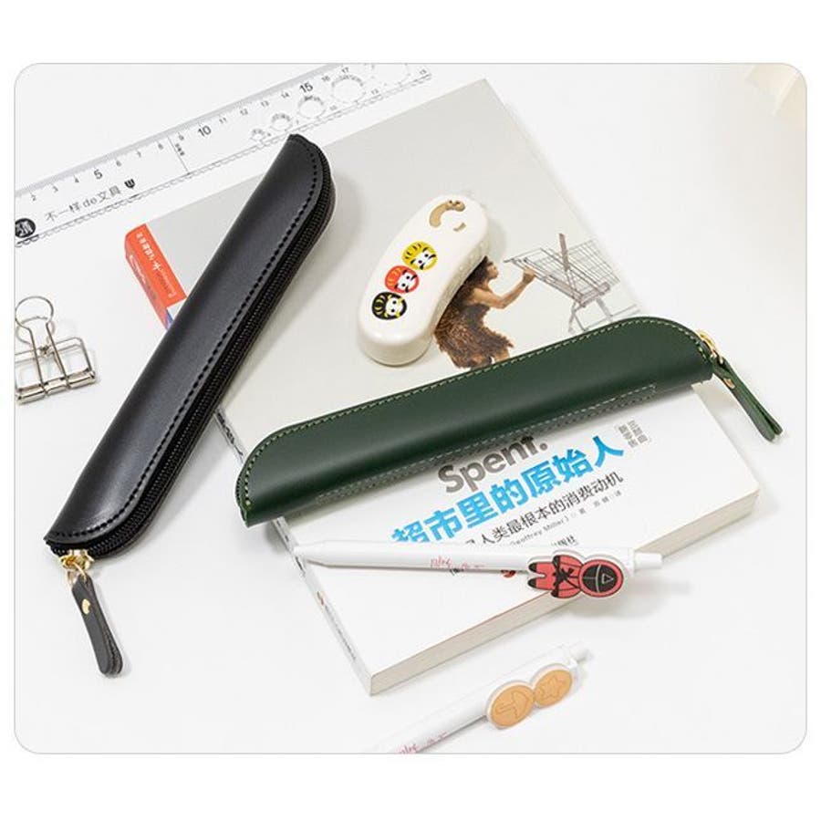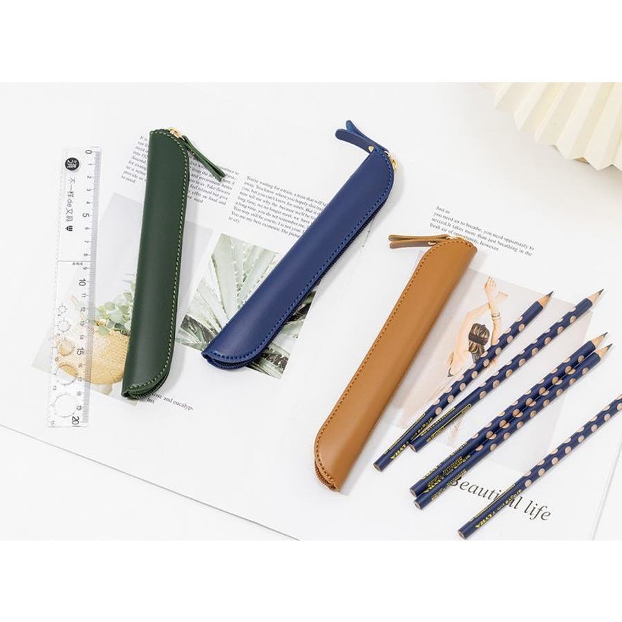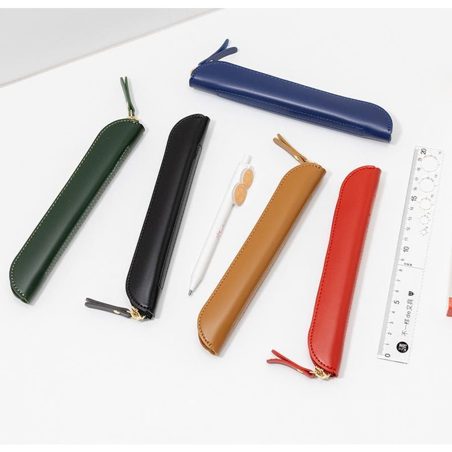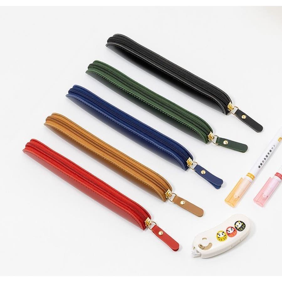 ファスナー開閉式のPUレザー製ペンケースです。