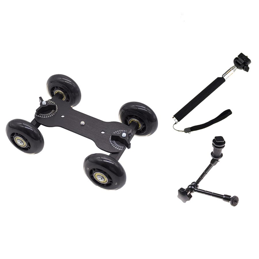 撮影時に使えるとっても便利な車!タイヤの角度も任意の位置で固定ができ、本体にはダボと同径の穴が3つ開いているので、発想次第で自由自在にカスタマイズできます。