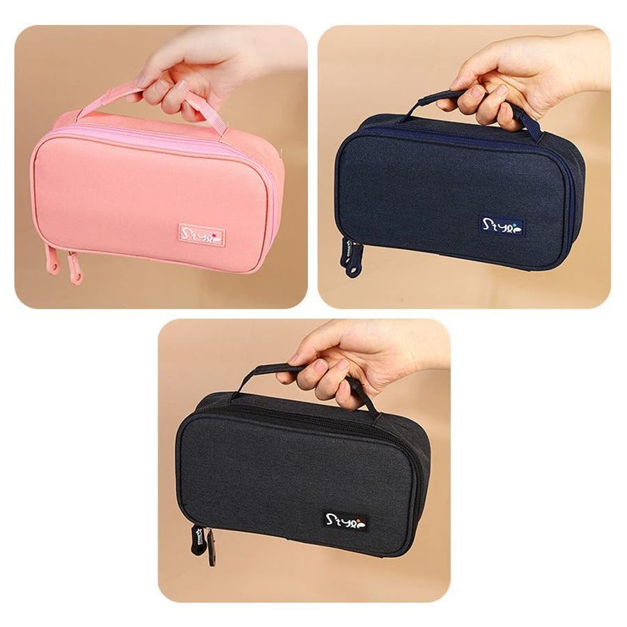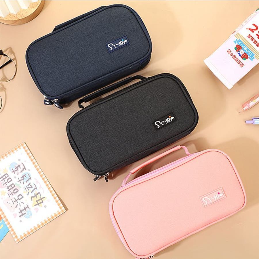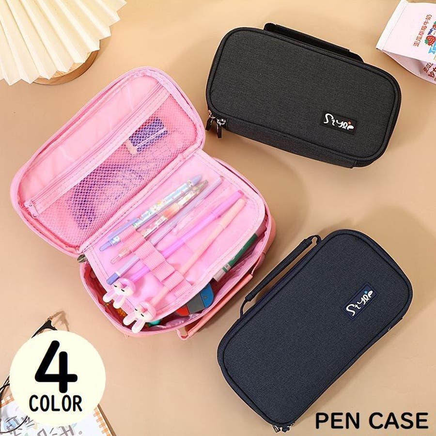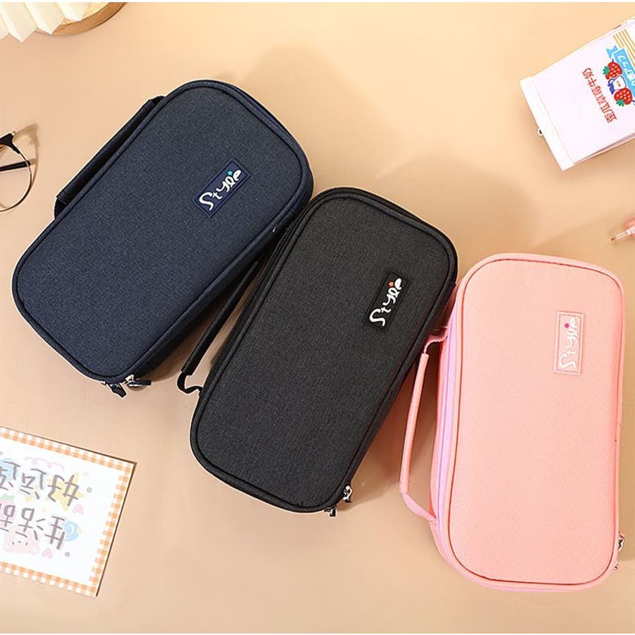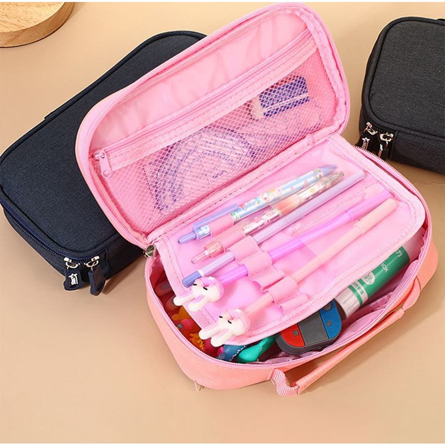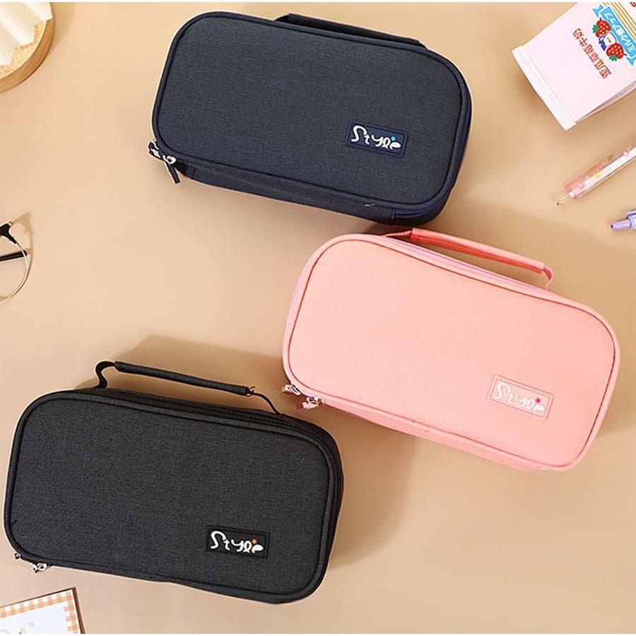 化粧ポーチや小物入れとしても使えるオックスフォード生地製ペンケースです。